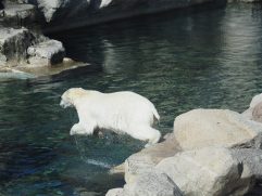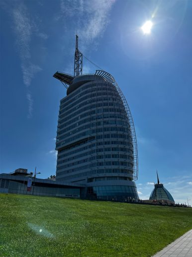 Die letzte Nacht war nicht ganz so gut. Erst war es laut draußen, denn irgendwo spielte ewig lange Musik. Als wir das Fenster zugemacht hatten, wurde es sehr schnell zu warm. Trotzdem waren wir ganz fit heute früh. Frühstück gab es um 8 Uhr und auch wieder reichlich. Bei bestem Wetter haben wir uns dann auf den Weg gemacht, so dass wir um kurz nach 9 Uhr schon im Zoo am Meer gewesen sind. Vor knapp 12 Jahren waren wir schon einmal in Bremerhaven und auch da haben wir den Zoo besucht. Er ist relativ klein, hat aber ganz tolle Außengehege. Vor allem für seine Eisbären, Seelöwen und Pinguine. Nach fast zwei Stunden waren wir in „fast“ aller Ruhe durch. Dann wurde es aber zu voll. Wir sind etwas an der Weser entlang gelaufen, haben einen Kaffee getrunken und sind dann in aller Ruhe durch das Moin!Outlet geschlendert. Wir sind schnell fündig geworden und haben noch ein paar Sachen für die bevorstehenden Reisen gekauft. Jetzt haben wir so gut wie alles zusammen. Zum Mittagessen waren wir im Oz Urfa. Das war richtig lecker. Nachdem wir die Einkäufe ins Hotel gebracht hatten sind wir ohne größere Pause gleich wieder los, denn wir wollten noch ins Klimahaus 8° Ost. Das hat sich so richtig gelohnt. Auch wenn draußen bestes Wetter war, haben wir die fast drei Stunden richtig genossen. Manchmal gibt es keine schlechten Tage (also vom Wetter) und man will so etwas trotzdem machen. Es ist eine sagenhafte Ausstellung, in der man entlang des Längengrads 8° 34’ Ost einmal um die Erde reist. Die Stationen sind Schweiz, Sardinien, Niger, Kamerun, Antarktis, Samoa, Alaska und Langeneß. Wahnsinn, wie klein unsere Probleme da werden und wie groß die Lust in einem werden kann, selbst wieder auf Entdeckungsreise zu gehen. Nachdem wir noch etwas am Wasser entlang gelaufen sind, haben wir noch etwas getrunken und eine Kleinigkeit gegessen. Dann ging es zurück zum Hotel, wo wir diesen tollen, aufregenden und sonnigen Tag ausklingen lassen. Morgen geht es dann heimwärts.