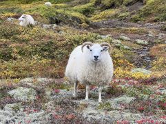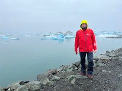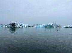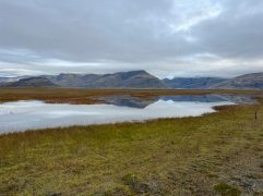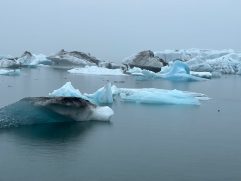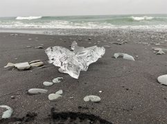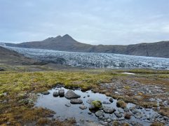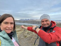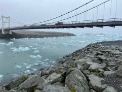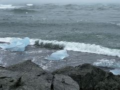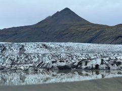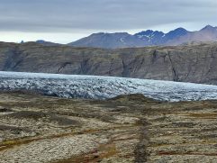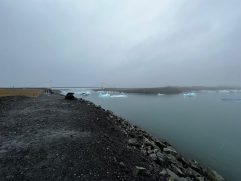 Letzte Nacht haben wir super gut geschlafen. Das mag daran gelegen haben, dass wir uns an der Hotelbar noch ein IPA geholt haben. Für Getränke geht hier gefühlt das meiste Geld drauf. Natürlich könnte man auch immer und ständig das kostenlose Wasser trinken, aber wo bitte bleibt denn da der Spaß? Also probieren wir uns durch die einheimischen und lokalen Biersorten und zahlen halt auch gerne etwas mehr dafür. Etwas mehr, ich lach mich schlapp. Beim Frühstück war auch noch nichts los und das, obwohl wir wieder eine halbe Stunde später dran gewesen sind. Heute war okay, aber im Laufe der Reise das bislang Schwächste. Umso erstaunlicher, dass es die teuerste Adresse der gesamten Reise gewesen ist. Ich erwähnte es ja gestern bereits. Mag dann an der Lage und der damit verbundenen Nähe zum Vatnajökull liegen. Wir sind dann auch zeitig los und Steffi musste erst einmal einige Fotos nachholen. Da waren zunächst noch das Restaurant von gestern Abend und im Anschluss die Koppel mit den Island Pferden. Und als ich dann endlich durchstarten wollte … oh Wunder … da waren auch die Ziegen wieder auf ihrer Wiese. Nunja, das sind ja Kleinigkeiten und wenn sie so eine große Freude bereiten, dann doch immer gerne. Die erste Etappe war dann relativ kurz. Nach knapp 40 Kilometern Fahrt haben wir das Gasthaus Skálafell erreicht. Ich habe kurz gefragt, ob wir auf dem Hof parken dürfen und schon sind wir mit unserer Wanderung gestartet. Nr. 18 aus dem Wanderführer hat uns nach zwei steilen Anstiegen direkt zum Skálafellsjökull geführt. Es war wieder einmal eine tolle Tour und knapp 3,5 Stunden mit wahnsinnig vielen Impressionen. Auch der Trail hat alles geboten, bis hin zu Bach Überquerungen und steilen An- und Abstiegen. Erstaunlich ist aber, dass wir fast immer so gut wie ganz alleine unterwegs sind. Manchmal trifft man zwei andere Wanderer, aber das war es dann auch schon. Zurück am Auto ging es für uns weiter Richtung Jökulsárlón und Diamond Beach. Leider wurde das Wetter rapide schlechter. Als wir dort ankamen war es natürlich gut gefüllt, so dass wir gar nicht erst auf dem Hauptparkplatz nach einer freien Lücke gesucht haben. Wir haben gleich gedreht und sind auf den anderen Parkplatz auf der anderen Seite der Straße gefahren. Als wir zum Strand gelaufen sind, um die „Diamanten“ zu sehen, da war noch alles gut. Doch dann kam der große Regen und wir haben uns etwas geärgert, nicht gleich auch die Regenhose angezogen zu haben. Also schnell zurück zum Auto und einmal Klamotten wechseln. Auf so kleinem Raum auch ein Kunststück. Im Anschluss war das Wetter egal und wir haben noch viel Zeit an der Lagune und am Diamond Beach verbracht. Zwischendurch gab es für jeden Hot Chocolate, Steffi hatte ein Hot Dog und ich Lobster Roll. Beides sehr lecker. Irgendwann haben wir uns dann doch auf den Weg gemacht, denn wir hatten noch ein ganzes Stück zu fahren. Ein bis zwei Fotostopps gab es unterwegs noch, aber im Grunde hat der Regen den Rest das Tages dominiert. Gegen 17:30 Uhr sind wir am Hunkubakkar Guesthouse angekommen, haben eben eingecheckt und auch noch den Tisch für das Abendessen reserviert. Hier bleiben wir wieder zwei Nächte und haben die eine Hälfte einer Holzhütte bezogen. Das Abendessen war richtig gut und wir werden auch diesen Tag der Reise zufrieden und mit einem Lächeln im Gesicht abschließen können. Ein Wermutstropfen bleibt natürlich und das war das heutige Wetter. Die Sicht auf die ganzen Gletscherzungen hätte natürlich gerne besser sein dürfen.