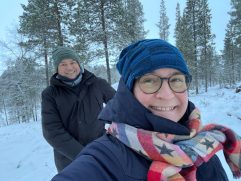 Ja, es war ein Riesenspaß und irgendwie begannen mit dem Cross Country Skiing 24 unglaubliche Stunden. Wir waren zwei Stunden unterwegs auf dem Lake Inari und hatten super viel Spaß. Beim Abendessen dann die erste kleine Aurora und alle sind aus dem Restaurant gestürmt. Es gab endlich Fleisch, nach drei Tagen Fisch und am späteren Abend auf dem See ein irres Aurora Spektakel. Später noch an die Bar und nach einer guten Nacht sind wir heute Schneeschuh wandern gewesen. Es war traumhaft durch den tiefen Schnee der Wildnis zu laufen. So viele Eindrücke seit gestern Nachmittag, die neu hinzu gekommen sind. Jetzt müssen wir uns erst einmal erholen und freuen uns später auf ein erneut schönes Abendessen und man kann nie wissen, was der Abend noch so für uns bereithält.