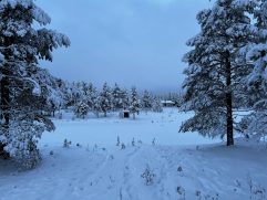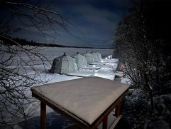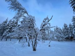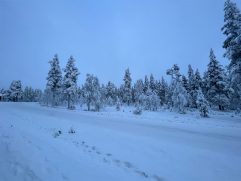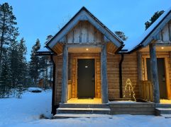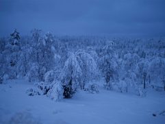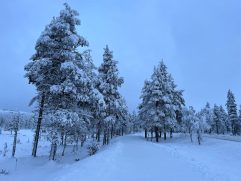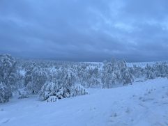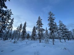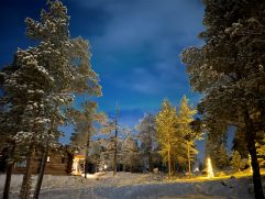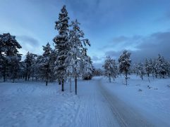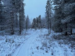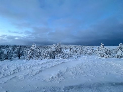 Das Abendessen gestern war gut und eine weitere kleine Aurora gab es auch noch. Allerdings war es auf dem See deutlich windiger und somit auch kälter. Geschlafen haben wir im Anschluss super gut. Heute ein letztes entspanntes Frühstück im Nangu Wilderness und dann erst einmal wieder Feivel frei kratzen. Dann ging es zurück nach Ivalo und weiter über die E75 nach Süden bis Saariselhä. Keine weite Strecke und auch kein besonderes Ziel, aber es hat sich gelohnt. Es ist ein Wintersportort, der etwas höher liegt als unsere Ziele am Lake Inari. Somit hat es dort auch deutlich mehr Schnee, was auf den Bäumen einfach super aussieht. Allerdings ist dort auch einiges mehr los, eben weil es touristisch sehr gut erschlossen ist. Nach zwei Runden durch die wunderschöne Winterlandschaft, einem heißen Kakao sowie Lunch ging es zurück nach Ivalo. Bevor wir in unser letztes Hotel dieser Reise eingecheckt haben, haben wir erst noch einige nützliche Souvenirs gekauft. Jetzt sind wir im Kultahippu Hotel, genießen auf unserem Zimmer 112 ein kühles Bier, hatten schon eine entspannte Zeit in unserer privaten Sauna und freuen uns auf ein letztes Abendessen.