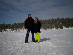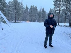Nach einer kleinen Runde sind wir gestern Abend erst einmal auf einen Glühwein an die Bar gegangen. Dann haben wir auch noch Activities für die nächsten Tage gebucht und unser Dinner genossen. Leider gab es schon wieder Fisch. Zum Frühstück sind wir heute dann erst um kurz vor 9 Uhr. Im Anschluss haben wir zu Fuß mal die Gegend erkundet. Da es keine richtigen Wege gibt, mussten wir die ganze Zeit entlang der Zufahrtsstraße laufen. Da diese aber durch den Wald führt, war es trotzdem recht angenehm und ruhig. Es hat jetzt auch mal aufgehört zu schneien, aber der Himmel ist trotzdem komplett bedeckt. Wir haben die Vermutung, dass dies unmittelbar nach unserer Abreise am kommenden Samstag besser werden wird. Heute Mittag haben wir uns etwas zurückgezogen, bevor wir dann um 15:30 Uhr unsere erste Aktivität starten – Cross Country Skiing. Das wird bestimmt lustig.