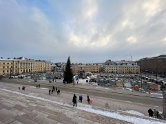 Die erste Nacht war ganz okay, denn das Bett ist sehr gemütlich. Wir sind langsam in den Tag gestartet und waren somit etwas später beim Frühstück. Danach haben wir uns warm angezogen und sind los, die Stadt erkunden. Als erstes haben wir die Felsenkirche besichtigt und anschließend ging es weiter zum Sibelius Monument. Von dort mussten wir nur ein kurzes Stück laufen, bevor wir mit der Tram zurück ins Zentrum fahren konnten. Es ging bis zur Uspenski Kathedrale und nachdem wir auch diese besichtigt hatten über den Zentralmarkt zur historischen Markthalle Vanha Kauppahalli. Dort haben wir uns eine ganze Zeit aufgehalten und bei einer heißen Schokolade aufgewärmt. Nachdem wir bis zum Olympia Terminal gelaufen sind, haben wir wieder die Tram zurück zum Dom genommen. Am Fuße des Dom zu Helsinki ist der Weihnachtsmarkt, auf dem wir gestern schon gewesen sind. Heute gab es Glühwein mit Rotwein. Wir sind dann noch etwas durch die Stadt geschlendert und haben bei Pretty Boy etwas gegessen. Jetzt erholen wir uns ein wenig und gehen nachher noch in die National Oper und schauen CircOpera 2.0.