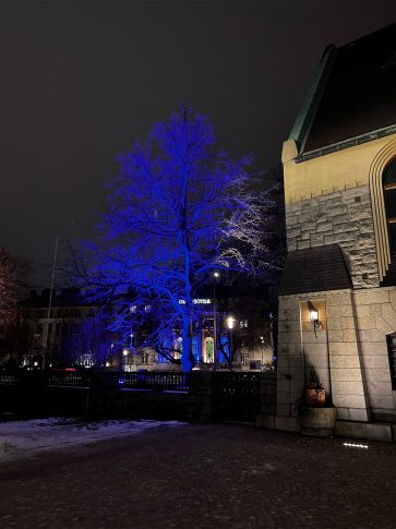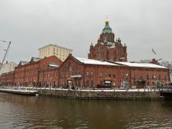 Was für ein Abend, was für eine Show. A great and spectacular night at the Opera. Zurück noch ein schöner Spaziergang zum Hotel. Weil wir noch gelesen haben, waren wir relativ spät im Bett. Aber nicht so schlimm, denn am Wochenende gibt es immer Brunch von 07:30 bis 14 Uhr im Hotel. Im Anschluss ging es zunächst in die Havilakatu, wo eine ganze Reihe bunter und schöner Häuser steht. Von dort in die Hietalahden Kauppahalli. Allerdings waren wir für die noch etwas zu früh. Wir sind dann erst mal in die Mall of Tripla gefahren. Mit der Tram waren wir eine ganze Zeit unterwegs. Gefunden haben wir nichts und zurück haben wir den Zug genommen. Das ging bedeutend schneller. Wieder am Hauptbahnhof hat es uns durch die Stadt wieder zum Weihnachtsmarkt gezogen. Heute haben wir den Helsinki Gin Glögi probiert. Der Gin kam leider nicht so richtig durch. Nach einer Runde vorbei am Wheel Helsinki sind wir mit der Tram noch einmal zur Kauppahalli gefahren und haben Bowl gegessen. Im Anschluss noch etwas Tram und auch ein kleines Stück mit der Metro. Unser 3-Day Ticket haben wir ganz gut genutzt. WIr hatten heute auch immer wieder leichten Schneefall, dafür aber auch durchweg grauen Himmel. Gleich werden wir noch etwas essen gehen und dann liegt schon unsere letzte Nacht in Helsinki vor uns.