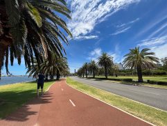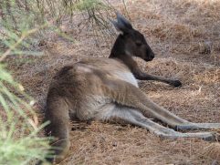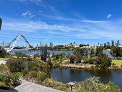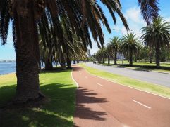 Heute ist Sonntag und Sonntags gibt es immer Full English Breakfast. Da sagen wir nicht nein. Spiegeleier, Bacon, Hash Browns, Sausages, Beans und Tomaten. Besser kann man fast gar nicht in den Tag starten. Danach haben wir uns auf den Weg zu einer kleinen Tour gemacht. Wir sind bis zum Optus Stadium und haben dort geparkt. Seit gestern hat unser Wagen auch endlich einen Namen. Steffi hat ihn Skippy das Känguru getauft. Da gehe ich doch gerne mit. Ins Stadion sind wir ohne eine Tour leider nicht hinein gekommen. Also haben wir uns über die neue Matagarup Bridge auf den Weg zum Elizabeth Quay gemacht. Dabei ging es immer entlang des Swan River, Delfin inklusive. Von dort ging es durch den London Court, wo wir uns ein leckeres Eis gekauft haben, zur Hay Street Mall. Nachdem wir uns auch noch mit kühlen Getränken versorgt hatten, ging es wieder zurück zum Parkplatz. Am Ende waren es gute sieben Kilometer bei schön warmen 36 °C. Wir waren aber noch nicht ganz fertig und haben auf dem Heimweg noch auf Heirisson Island gestoppt. Auf der Insel mitten im Swan River kann man immerhin Kängurus sehen. Zurück in Parkwood haben wir noch etwas die Ruhe genossen, haben die Sachen für die kommenden Tage zusammen gepackt und BBQ Chicken gegessen.