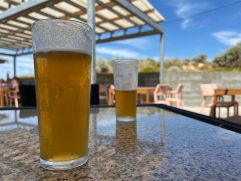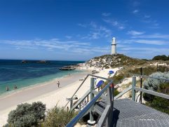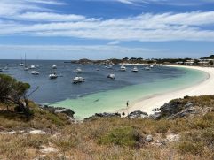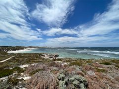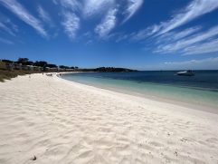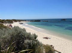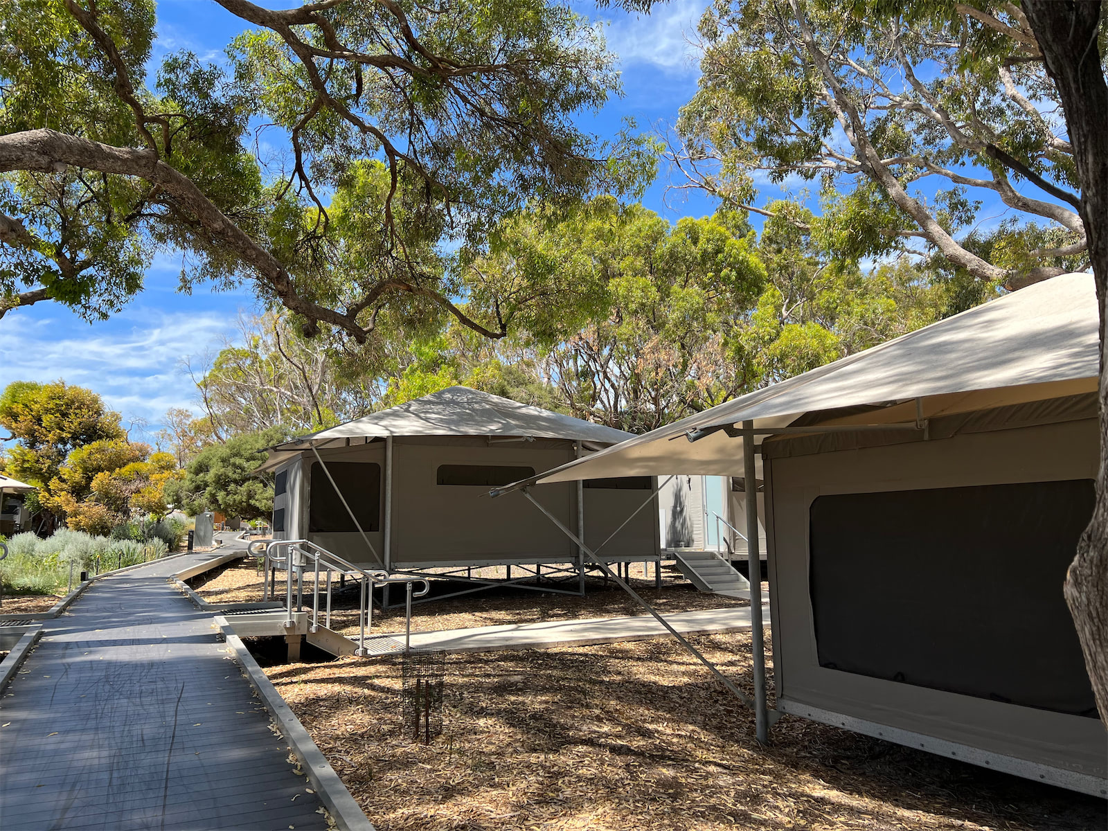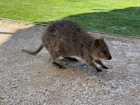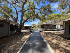 Wir sind gestern Abend noch in die Gage Roads Freo Brewery gegangen und hatten eine tolle Zeit. Leckeres Pale Ale zum Sonnenuntergang und dazu Beef Empanadas und Prawn Tacos. Auf dem Rückweg gab es noch eine Kugel Eis. Geschlafen haben wir ausreichend, allerdings mit Unterbrechungen. Es war doch relativ warm unterm Dach. Frühstück war bereits alles auf dem Zimmer. Obst, O-Saft, Kuchen, Müsli, Joghurt und Milch. Dazu Wasserkocher und jede Menge Tee. Um 9:15 Uhr haben wir uns auf den Weg zum B Shed gemacht. Wir mussten eine gute Viertelstunde laufen und konnten dann direkt am Fähranleger unsere Reisetasche abgeben. 15 Minuten später legte dann auch die Fähre zur Weiterfahrt nach Rottnest Island ab. Wir haben uns zwei Plätze auf dem Unterdeck gesucht und schon ging es los. Die Überfahrt war ganz schön bumpy, aber auch schnell vorbei. Am Anleger haben wir dann unsere gebuchten Fahrräder, Helme und Fahrradschlösser bekommen. Ich bringe es gleich mal auf den Punkt: leider ist alles Rubbish. Für die Fahrräder müsste man eigentlich Geld bekommen um sie zu fahren und die Schlösser funktionieren auch nicht immer. Ziemlich doof, wenn man die Fahrräder abgeschlossen hat und nicht weiterkommt. Egal wir haben uns trotz Wind über die halbe Insel gequält und dann am Geordie’s Cafe einen Lunch zu uns genommen. Foccacia und Beef Sliders. Dann haben wir in der Longreach Bay die Füße ins Wasser gesteckt, bevor wir zu unserer Unterkunft Discovery Rottnest Island gefahren sind. Wir haben das Superior Zelt Nummer 81 bekommen und nach einem kühlen Bier an der Bar sind wir noch zum Baden gegangen. Im Anschluss noch mal an die Bar, wo wir auch die ersten Quokkas fotografiert haben. Unser Zelt (Glamping) ist wirklich riesig und super ausgestattet. Gleich gehen wir noch zum Abendessen runter in die Thompson Bay und haben morgen auch noch viel Zeit. Dann nehmen wir aber mal den Bus.