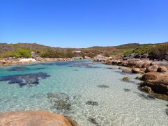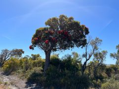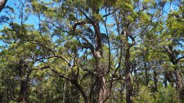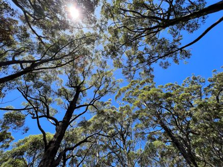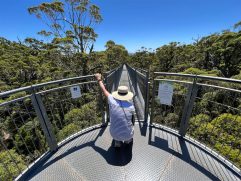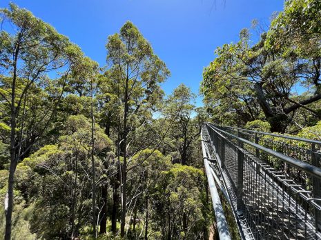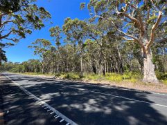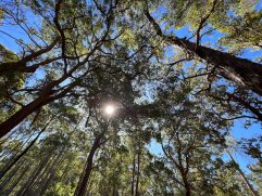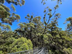 Was gestern Abend noch passierte, war einfach grandios. Irgendwann bin ich raus in die Dunkelheit vor unserem Zimmer gegangen und ein beeindruckender Sternenhimmel inklusive Milchstraße tat sich auf. So haben wir noch einige Zeit draußen verbracht, bevor wir geschlafen haben. Heute Morgen waren wir zum Frühstück noch einmal bei Mrs Jones und haben draußen den Tag gestartet. Dann hieß es wieder packen, und es ging ab zur Madfish Bay. Wir haben noch einmal Strand und Wasser genossen, bevor wir dann Denmark endgültig verlassen haben. Eine gute halbe Stunde später waren wir schon im Valley of the Giants und haben den Tree Top Walk in Angriff genommen. Wieder zwei Runden, genau wie vor drei Jahren, allerdings bei Sonne und blauen Himmel. Auch die Temperaturen sind heute wieder deutlich nach oben geklettert. Nach Iced Coffee und Souvenirs für Steffi haben wir uns auf den Weg zu unserem Ziel Ort Manjimup gemacht. Noch drei Stopps unterwegs. Einen am Coal Mine Beach, einen kurzen in Walpole und den letzten irgendwo unterwegs. Ich wollte gerne mal eine Baumkrone eines Karri Baums aufnehmen. Nach einer gemütlichen Fahrt durch die Wälder sind wir gegen 16:30 Uhr am Motor Inn angekommen. Hier bleiben wir nur eine Nacht, bevor es morgen schon zum letzten Etappenziel Margaret River geht.