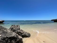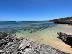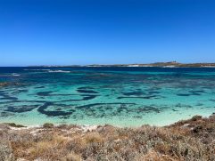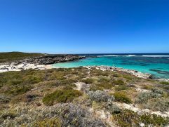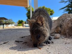 Der Spaziergang runter zum Hafen gestern Abend war super schön und da auch schon die letzte Fähre abgelegt hatte, war es inzwischen sehr übersichtlich auf der Insel geworden, was die Besucher anging. Am Abend sieht man fast mehr Quokkas als Menschen. Das Abendessen war genial. Wir hatten einen Tisch in der ersten Reihe mit Blick auf das Meer. Als Vorspeise hatten wir total leckeres Pork Belly und die Hauptspeise war Mega. Es gab Angus Beef mit Kimchi, Bernaise und Egg Yolk Tare. Dazu noch asiatischen Reis. In der Rangliste der besten Steaks muss dieses hinter Kobe und Montevideo Platz 3 bekommen. Auf dem Rückweg dann noch mehr Quokkas und leider auch einige Moskitos. Verbrannt haben wir uns gestern auch noch irgendwie. Die Nacht war dann nicht durchgehend gut, denn es war sehr windig. Der Wind hat das Zelt ganz schön wackeln lassen. Dafür war dann heute Morgen das Frühstück richtig gut. Einmal Buffet mit Allem. Die Tasche hatten wir einfach vor die Tür gestellt und sie wurde direkt zur Fähre gebracht. Dort sind wir nach dem Check-Out auch gleich mit unseren gruseligen Fahrrädern hingefahren und da gerade eine Fähre angelegt hatte haben wir die Chance genutzt und die Räder wieder abgegeben. Weiter ging es dann wie geplant mit dem Bus, der im 20 Minuten Rhythmus einmal über die Insel fährt. Erster Stopp Little Salmon Bay, wo wir geschnorchelt sind. Dort sind wir auch gleich mit Aussies ins Gespräch gekommen. Weiter ging es über West End bis Ricey Beach. Wir wollten eigentlich Stark Bay aussteigen, haben aber den Halt verpasst. Sind wir halt ein Stück zurückgelaufen und haben in einer der kleineren Buchten irgendwo dazwischen wieder geschnorchelt. Dann ging es mit dem Bus zur Endhaltestelle. Wir haben in The Mezz on Rotto etwas getrunken und ich hatte super leckere Baramundi Tacos. Später hatte Steffi noch einen Salat aus dem Supermarkt und ich ein Eis. Egal was man auf Rotto macht, die Quokkas sind überall. 16:30 Uhr hat uns die Fähre wieder zum Festland gebracht. Wir haben unsere Sachen ins Auto gepackt und sind zum Fisch essen ins Kailis Fishmarket Cafe gegangen. Steffi hatte Traditional Fish & Chips vom Grill und ich BBQ Cuttlefish. Satt und glücklich ging es zurück nach Parkwood.