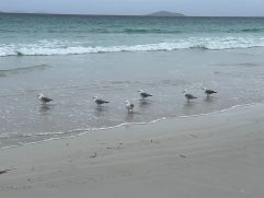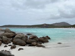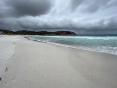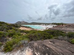 Auch letzte Nacht haben wir wieder gut geschlafen. Wir fühlen uns hier aber auch richtig wohl. Esperance is the Place to be! Zum Frühstück sind wir heute ins Dome Cafe und Restaurant gegangen. So kann der Tag immer beginnen. Dann ging es auf die 50 Kilometer zum Cape Le Grand National Park. Das Wetter war heute zum ersten Mal nicht so gut. Im Maximum nur 25 °C und durchgehend bewölkt. Nachdem wir uns in den letzten Tagen leider etwas verbrannt haben, gar nicht so schlecht. Aber aufpassen muss man trotzdem. Wir sind alle Buchten angefahren und haben zwei ausgedehnte Strandspaziergänge gemacht. Am Ende hat es heute wieder einmal für gute 13 km gereicht. Am frühen Nachmittag ging es dann zurück nach Esperance. Die weitere Strecke bis Cape Arid wollten wir dann nicht mehr auf uns nehmen. Nachdem wir den ganzen Sand aus unserem Wagen gesaugt und uns geduscht hatten, sind wir entlang der Promenade zu Taylor St Quarters gelaufen. Wir hatten einen schönen Tisch draußen mit Blick auf das Wasser. Neben Pale Ale gab es Fish Tacos, Chorizo, Chips und Tofu Bao Buns. Das war wirklich alles super lecker. Jetzt haben wir leider schon unseren letzten Abend in Esperance, aber noch lange nicht das Ende dieser Reise. Dennoch würden wir hier länger, gerne vielleicht auch für immer bleiben. Morgen dann Bremer Bay, 300 Kilometer fahren und 51 werden.
