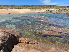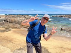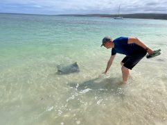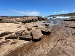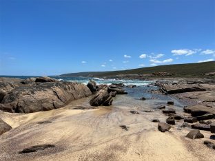 Und schon wieder eine Nacht, in der wir ganz gut geschlafen haben. Von Vorteil ist, dass wir nur selten länger schlafen. So brauchen wir uns, wenn der Alltag wieder einkehrt, nicht so sehr umstellen. Da wir heute noch einmal die Chance auf Stingrays in Hamelin Bay ergreifen wollten, sind wir direkt in die Richtung aufgebrochen. Gefrühstückt haben wir unterwegs im Yardbird Cafe. Wir hatten beide ein leckeres Omelette. War das erste Mal in diesem Urlaub. Dann ging es weiter und wir waren schon um 9:30 Uhr in der Hamelin Bay. Heute hatten wir auch mehr Glück. Der Wind hatte etwas abgenommen und das Meer war ruhiger. Zwischenzeitlich konnten wir bis zu sechs Rochen vom Strand beobachten. Nachdem wir etliche Fotos und Videos gemacht hatten, ging es weiter bis zum Cape Leeuwin. Wir haben ein paar tolle Bilder vom Leuchtturm gemacht und uns das Museum (das alte Leuchtturmwärter Haus) angesehen. Ach ja, nachdem sich Steffi gestern im Souvenir-Shop an der Jewel Cave nicht so richtig entscheiden konnte und wir heute ganz zufällig wieder dort vorbeigekommen sind … durfte ich dort heute noch einmal anhalten, damit sie sich ihr Andenken kaufen konnte. Nach dem Leuchtturm sind wir in der Flinders Bay noch schwimmen gewesen. Wir haben dort auch noch die Bucht gewechselt und hatten am Ende Granny’s Pool ganz für uns alleine. Das war herrlich. Eine komplett geschützte Bucht und das Wasser nicht zu tief. Auf dem Rückweg haben wir in Augusta noch etwas getrunken und waren dann am Nachmittag wieder in Margaret River. In der Brewery haben wir für heute Abend einen Tisch reserviert und morgen geht es mit einigen Stopps zurück nach Parkwood.
