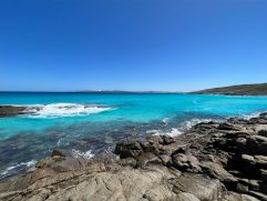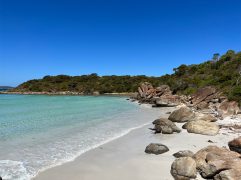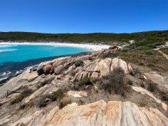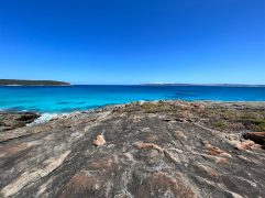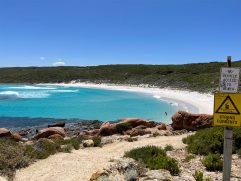 So denn, Geburtstag ist wieder abgehakt. Zum Abendessen ging es gestern pünktlich, aber der Tisch drinnen hat uns nicht gefallen. War zu laut, denn es gibt auch Menschen, die ihren Geburtstag in großer Runde feiern. Sind wir spontan nach draußen gegangen und hatten einen ruhigen und schönen Abend. Heute Morgen haben wir an gleicher Stelle gefrühstückt und sind dann in Richtung Point Ann aufgebrochen. Gravel Road ist ja kein Problem, aber die war richtig schlecht. Also wieder umgedreht. Dann halt zum Dillon Beach und schon wieder an den Straßenverhältnissen gescheitert. Leicht frustriert ging es zurück nach Bremer Bay und auf die Point Henry Peninsula. Nach einem Stopp am Wellstead Museum und Cafe Bremer Bay sind wir noch einmal zum Native Dog Beach. Von dort zum Bremer Beach. Wir haben uns bei Orcas Coffee Company ein leckeres Eis gekauft und sind dann am Strand entlang. Anschließend ging es rauf zum Cuneo Drive. Von oben sah das Wasser so einladend aus, dass wir gleich noch eine Runde schwimmen gegangen sind. Nach einer erfrischenden Dusche sind wir in die Bremer Bay Brewing Company gegangen. Wir hatten leckere Biere, einen Gin Tonic und Burger zum Abschluss dieses Tages. Morgen geht es dann wieder weiter Richtung Westen.