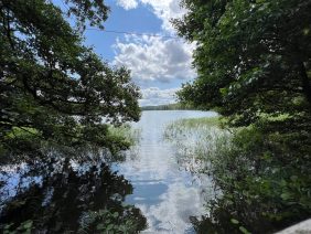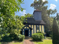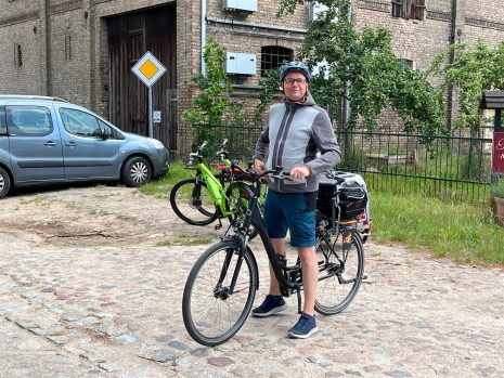 Das gemeinsame Abendessen war sehr gut und wir hatten lange und interessante Gespräche. Die Nacht war auch schon angenehmer, so langsam haben wir unseren Rhythmus scheinbar gefunden. Auch heute früh war es zu sechst eine schöne Runde beim Frühstück. Wir sind um kurz vor 9 Uhr mit Rucksack und Helm zur Pension Waldesruh gelaufen und kamen gerade noch pünktlich an. Schnell unser Abendessen für heute ausgesucht und dann unsere Räder aus dem Unterstand im Hinterhof geholt. Die erste Etappe war nur kurz und dann waren wir im Flößermuseum. Klaus, unser Kapitän von gestern, hat uns durch das Museum geführt. Von dort ging es rauf nach Hohenlychen und dann weiter nach Annenwalde. Neben weiterer Besichtigungen haben wir dort auch unsere Mittagspause gemacht. Es gab leckere regionale Knacker und ein Baltic Storch. In einem Hofladen habe ich mir zwei vegane Riegel gekauft und man mag es kaum glauben, aber einer schmeckte wie ausgezeichnet nach Franzbrötchen. Dann ging es mit den Rädern nach Alt Placht, wo wir das Kirchlein im Grünen besichtigt haben. Zu jeder Besichtigung gab es natürlich auch immer Geschichte und Gespräche. Da fällt mir noch eine Geschichte ein. Die ursprünglich geplante Mittagspause wurde heute morgen spontan telefonisch abgesagt und wir haben in Annenwalde zum Glück eine Alternative gefunden. Der Landgasthof Anne 13 hat eigentlich nur am Wochenende geöffnet, hat uns aber spontan bewirtet. Und nicht nur das. Einer aus de Team hat sich zu uns gesetzt und für uns ein paar Stücke auf seiner Gitarre gespielt. Das war schon richtig gut und man hat sich sehr gut aufgehoben gefühlt. So bringt man sich ins Gespräch und gewinnt Gäste. Nach dem Besuch des Kirchlein hatte Eike (unsere Seminarleiterin) noch Kaffee und Kuchen für uns im Grünen. Sehr schön wir konnten von unserem Platz neben der Weide vier Rotmilane beobachten. Die 10 Kilometer lange Rückfahrt bis Lychen haben wir dann individuell angetreten. Wir können mit unseren Leihrädern bei den ganzen eBikern sowieso nur schwer mithalten. Nach einer kleinen Erholungsphase sind wir wieder zum Abendessen.