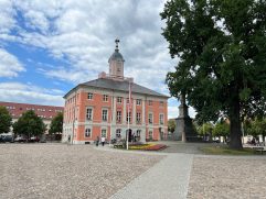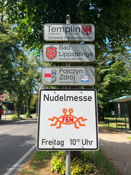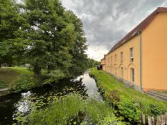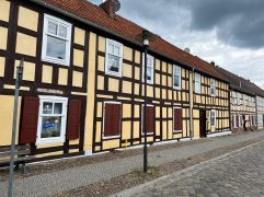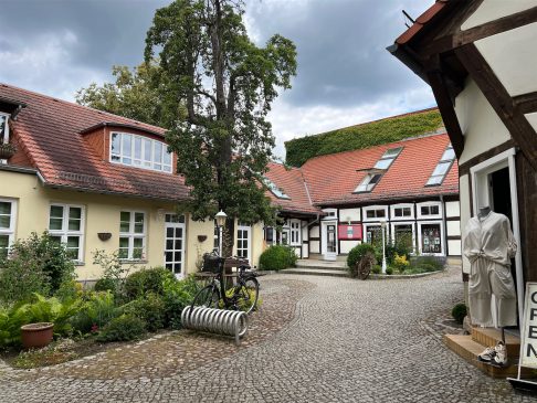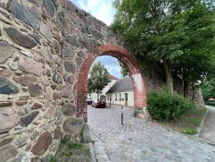 Die gestrige Führung durch die Mühle war sehr interessant. Vor allem das, was der Verein in Zukunft damit vor hat. Warten wir mal ab. Wiederkommen lohnt sich also. Das Abendessen draußen in der Mühlenwirtschaft war auch richtig gut. Das Beste aber war natürlich wieder mal das Storchenbier. Ins Kino haben wir es aber nicht mehr geschafft. Ein Teil der Gruppe ja, aber wir wollten uns nicht stressen. Noch einer ruhigen Nacht waren wir wie gewohnt um 8 Uhr beim Frühstück und sind um kurz nach 9 Uhr los unsere Leihräder abgeben. Die sind wir zum Glück jetzt los. Mit dem Bus ging es dann nach Templin zum Joachimsthalschen Gymnasium. Fräulein Christine hat uns dort zwei Stunden durchgeführt. Spannend und toll, aber ich hätte Anfang des 20sten Jahrhunderts nicht leben und dort mein Abitur machen wollen. Nach der Führung sind wir langsam in die Altstadt von Templin gelaufen. Es gab Flammkuchen zu essen und wir saßen in eine netten kleinen Café in einer schmalen Gasse der Altstadt. Danach hatten wir noch etwas Zeit die Altstadt in kleineren Gruppen selbst zu erkunden, bevor es mit dem Linienbus zum Feierabend nach Lychen ging. Die historische Stadtführung ist leider ausgefallen und so mussten wir unsere Erkenntnisse und Erfahrungen miteinander teilen. Das letzte gemeinsame Abendessen findet heute auch früher statt. Morgen ist dann schon wieder alles vorbei und es geht wieder nach Hause.