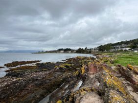 Noch einmal kurz zu gestern: nachdem wie die erste Wanderung nicht machen konnten/wollten und uns für die zweite aus unserer App entschieden hatten, verhielt es sich am Abend nicht viel anders. Das Restaurant unserer Wahl konnte/wollte uns nicht bewirten und im Zweiten gab es das von Steffi erwählte/ersehnte Gericht leider nicht mehr. Also irgendwie alles zweite Wahl. Aber es war dennoch richtig gut und ein schöner Abend. Gut war dann auch die Nacht bis ca. 3:30 Uhr. Da war ich dann zumindest wach. Es fühlte sich fast an, we ausgeschlafen. War ich am Ende aber nicht, denn irgendwann war ich wieder im Land der Träume. 8:30 Uhr waren wir wieder bei Frühstück und der kleine Versorgungsengpass ging gleich weiter. Heute war der Lachs alle. Also hatten wir Beide Egg’s Florentine mit extra Bacon und Steffi auch noch gebratene Pilze. Dazu natürlich schwarzer Tee mit Milch. So gegen 10 Uhr hatten wir alles gepackt und sind los. Erster Stopp nach kurzer Fahrt in Dumbarton. Ich hatte noch einen Wollladen rausgesucht. Heute haben wir aber nichts gekauft. Weiter ging es über die Erskine Bridge auf die Südseite des Clyde River und dann nach Westen bis Gourock. Hier hatten wir letztes Jahr einen Tagesausflug hin gemacht. Wir sind der Küstenstraße bis Largs gefolgt und dann ins Landesinnere Richtung Clyde Muirshiel abgebogen. Immer wieder haben wir Stopps eingelegt. Mal nur für ein paar Fotos, mal für einen kleinen Spaziergang. Kurz hinter Lochwinnoch sind wir dann über den Semple Trail bis Castle Semple ColLegiate Church und wieder zurück gewandert. Anschließend haben wir uns auf den Weg zum Glasgow Airport gemacht, wo wir heute die letzte Nacht im Premier Inn verbringen. Kurz vor unserem Ziel waren wir noch auf Black Pudding Roll und Beef Pie in einem Farm Shop und als perfektes Abschiedsgeschenk haben wir noch Highland Rindern gesehen. Besser geht es gar nicht. Inzwischen haben wir im Premier Inn eingecheckt, den Mietwagen abgegeben und die Koffer für den zweiten Teil unserer Reise umgepackt. Für 19 Uhr haben wir einen Tisch im Thyme reserviert und da morgen früh der Wecker um 5:00 Uhr klingelt, werden wir wohl zeitig ins Bett gehen. Aber eine kurze Nacht können wir uns durchaus erlauben, so viel wie wir in den letzten Tagen geschlafen haben.