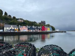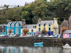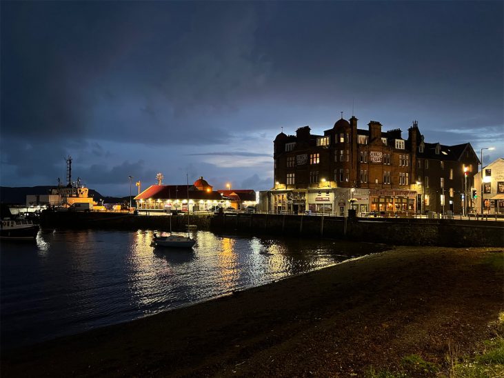 Um 5 Uhr bin ich das erste Mal wach geworden und habe leider wieder direkt meinen Rücken gespürt. Ich hatte nach dem gestrigen Tag eigentlich gehofft, es sei wieder besser. Aber möglicherweise braucht es seine Zeit. Zwei Stunden später gab es dann den ersten Kaffee und kurze Zeit später haben wir uns fertig gemacht. Ein Blick aus dem Fenster reichte aber schon um zu wissen, was uns heute erwartet. Um 8:15 Uhr sind wir im Regen runter zum Hafen gelaufen. Wir hatten für das Frühstück etwas mehr Zeit eingeplant. Wer weiß denn schon, was dort los sein würde. Am Ende war die ganze Planung für die Katz. Im Corryvreckan war gar nichts los und so hatten wir noch massig Zeit. Die Fähre um 9:55 Uhr wiederum war sehr voll und so mussten wie ewig Schlange stehen, um an Bord zu gelangen. Aber wir hatten schnell einen Sitzplatz und die knapp einstündige Überfahrt zur Isle of Mull verlief ohne Probleme. Da es bei unserer Ankunft wieder in Strömen gegossen hat, haben wir uns spontan für den Bus nach Tobermory entschieden. Im Vergleich zur Fähre war der Bus richtig teuer und da es auch in Tobermory fast durchgehend geregnet hat sind wir uns noch nicht einmal einig, ob sich der Besuch gelohnt hat. Aber man kann dem Regen ja ganz gut ausweichen, indem man in einem Pub ein Pint trinkt, in ein paar Läden reinschaut oder sich einfach mal wo unterstellt. Am Ende wurde es dann doch trocken und bei unserer Abfahrt um 14:20 Uhr auch noch sonnig. Die Sonne zeigte sich auch noch, als der Bus nach über 20 Meilen wieder Craignure (Fähranleger) erreicht hat. Wir hatten uns schnell für die nächste Fähre entschieden und sind auf eine kleinere Wanderung gegangen. Der Hinweg war super. Nur zurück haben wir es auf den letzten paar hundert Metern noch einmal richtig von oben bekommen. Wieder auf der Fähre wurde es schnell besser und so konnten wir relativ entspannt nach dem Anlegen in Oban zum Abendessen ins Cuan Mór gehen. Wir hatten sofort einen Zweiertisch und wirklich gutes Essen. Dazu noch zwei große Bier. Auf dem Heimweg die Treppen rauf zum Invercloy Guesthouse fing es wieder leicht an zu regnen. Morgen bewegen wir dann mal wieder unseren Mietwagen. Es soll Richtung Norden gehen. Fort William, Glenfinnan Viaduct, Mallaig. Das machen wir alles vom Wetter abhängig. Frühstücken werden wir irgendwo auf dem Weg dorthin. Vorher aber erst einmal ausschlafen, denn der heutige Tag war doch anstrengend.