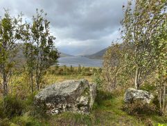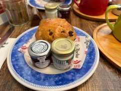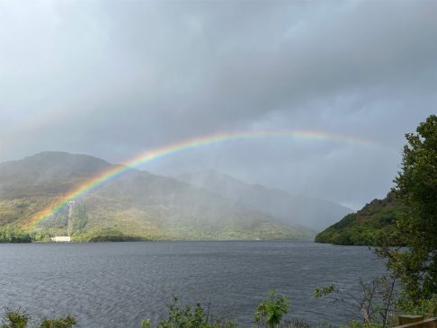 Auch heute sind wir erst kurz vorm Wecker wach geworden. Um zu wissen wie das Wetter so für war, musste man einfach nur hinhören. Der Regen zog sich bis in den frühen Nachmittag. Zwischendurch immer mal mit trockenen Phasen, aber Wasser kam reichlich von oben. Um 8:30 Uhr sind wir frühstücken gegangen. Wir haben hier in Balloch tatsächlich die erste Unterkunft mit Frühstück. Wir waren die Ersten und konnten aus der Karte wählen. Steffi hat die Egg’s Royale genommen. Eigentlich Benedict mit extra Lachs. Ich hatte wieder Smashed Avocado on Sourdough und Rote Beete Püree. Dazu haben wir noch extra Bacon bestellt. Kaffee, Tee oder Saft nimmt man sich selber. War sehr gut, wenn auch etwas wenig. Dann haben wir uns auf den Weg in den Nationalpark gemacht. Ich hatte eine schöne Wanderung rausgesucht. Am Startpunkt angekommen hat es gegossen wie aus Eimern. Wir sind noch die letzten 4 Meilen bis Inversnaid gefahren. Dort haben wir dann auch festgestellt, dass der größte Teil der Wanderung entlang der Straße verlaufen wäre. Also sind wir in Inversnaid ein Stück über den West Highland Way gelaufen. Auf dem Rückweg haben wir noch am ursprünglichen Startpunkt in Stronachlachar geparkt und sind Richtung Loch Chon gelaufen. Nach kurzer Zeit ward er Weg aber fast nicht mehr passierbar und wir sind wieder zurück zum Auto. Was ein Glück, denn gerade angekommen gab es wieder richtig Regen. Also haben wir uns auf die knapp 10 Meilen über enge Straßen bis Aberfoyle gemacht, um dort einen Cream Tea zu genießen. Cream Tea besteht immer aus Tee mit Scone, Butter und Marmelade. Kaum zu glauben, aber plötzlich war der Regen weg und es kam sogar die Sonne heraus. Wir waren in The Scottish Wool Centre, hatten leckeren Cream Tea (Butter ersetzt durch Clotted Cream) in The Station Coffee Shop und Steffi hat sich auch noch ein Knäuel schottische Sockenwolle gekauft. Auf unserem Weg nach Balloch haben wir kurz vorher noch ein weiteres Mal gestoppt und hatten eine super tolle zweistündige Wanderung durch Whinny Hill Wood. Die perfekte Mischung aus Wäldern, Wiesen, Feldern und am Ende auch kaum befahrene Straßen. Das ganze bei fast perfektem Wetter. Wieder ein langer und anstrengender Tag, den wir jetzt mit einem hoffentlich leckeren Abendessen beenden werden.