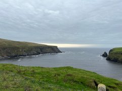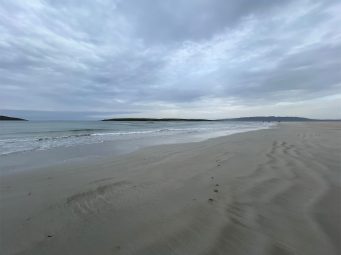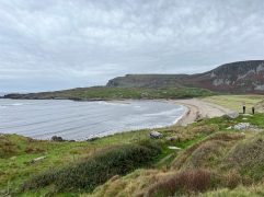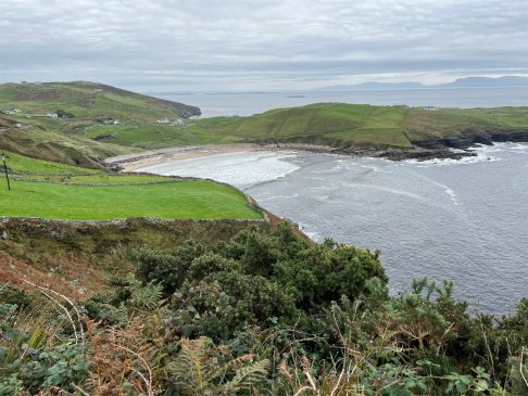 Auch heute sind wir wieder zeitig aufgestanden und waren um 8 Uhr beim Frühstück. Auch wenn die Nachtruhe durch lärmende Kinder unterbrochen wurde, war der Schlaf ausreichend. Nach dem Frühstück haben wir alles gepackt, den Schlüssel abgegeben und sind gegen 9 Uhr aufgebrochen. Zunächst war es trocken. Für uns ging es weiter über den Wild Atlantic Way. Erster Stopp war am Naran Beach. Sehr weitläufig und wohl einer der schönsten Strände. Fehlte die Sonne, dann wäre es perfekt gewesen. Es ging immer weiter über den WAW mit teilweise beeindruckenden Ausblicken. Egal ob beim Blick ins Tal bei Glengesh, oder von oben hinab auf den Silver Beach. Es waren viele kleine Momente. Einen großen Moment hatten wir aber dann bei Rossan Knitwear. Nachdem wir uns Beide nach vielen Anproben jeder für einen Wollpullover entschieden hatten, gab es noch eine kleine persönliche Führung. Das war echt genial und interessant. Ein Familienbetrieb und alles handgefertigt. Die Wolle kommt aus dem Nachbarort. Also Irish Handmade. Wir sind super zufrieden. In Killybegs haben wir auf Tee und Scones gehalten und uns anschließend noch die Fischereiflotte im Hafen angesehen. Wenn man die Größe der Schiffe bedenkt und dann dazu die Anzahl der Schiffe nimmt ist es ehrlich gesagt ein Wunder, dass überhaupt noch etwas in den Meeren dieser Welt schwimmt. Nachdem wir wieder am Parkplatz waren haben wir uns entschlossen den Rest der Etappe in Angriff zu nehmen. Es war schon Nachmittag und wir hatten noch drei Stunden Fahrt vor uns. Gehalten haben wir tatsächlich nur noch kurz zum Tanken. Um 18 Uhr haben wir Achill Sound erreicht. Hier sind wir nun zwei Nächte im Greystone House. Gefällt uns bisher sehr gut. Wir haben nur kurz die Sachen ins Zimmer gebracht und uns frisch gemacht. Dann ging es schnell mit dem Auto zum Abendessen. Das war super lecker. Es gab Roast of the Day. Einmal Lamb und einmal Turkey & Ham. Dazu Kartoffelstampf, Gemüse und Gravy. On Top noch Preiselbeergelee und Mint Sauce. Dann haben wir schnell das Auto wieder weggebracht und sind in den benachbarten Pub gegangen. Es gab heute Live Musik und dazu Guinness. Pub Musiker ist manchmal ein hartes Brot. Man muss die Leute erst einmal auf seine Seite bekommen. Was deutlich schwerer zu sein scheint, wenn parallel die Rugby WM im Fernsehen läuft.