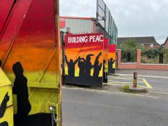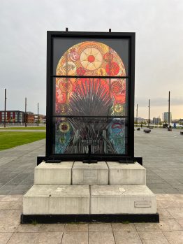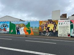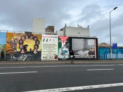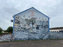 Die erste Nacht haben wir ganz gut geschlafen und obwohl wir heute früh ganz schön getrödelt haben, waren wir trotzdem um 8:30 Uhr die Ersten beim Frühstück. Hier haben wir dann auch Nicole kennengelernt, die uns wirklich bestens versorgt hat. Steffi hatte das House Breakfast, was in etwas einem Full Breakfast entspricht. Ich hatte mich für das vegetarische entschieden. Sauerteig Toast mit Relish, Avocado Smash, Halumi, Portobello und Poached Egg’s. Dazu noch gegrillte Cocktailtomaten und wie immer Tee. Um 10 Uhr sind wir in die Stadt gestartet. Wir hatten uns Beide wieder ein Tagesticket, dieses Mal über die App, gekauft und sind zum Grand Opera House gefahren. Von dort zu Fuß zur International Wall und weiter entlang der Peace Wall. Zwischenzeitlich hatten wir auch schon zwei der Tore passiert, die Nacht für Nacht geschlossen werden. Dann haben wir die Tour durch das Crumlin Road Gaol gemacht. Sehr interessant. Dann immer noch zu Fuß durch die Donegal Street bis zum Commercial Court. Dort haben wir draußen vorm Duke of York auf einer Bank gesessen und ein schönes Pint IPA getrunken. Dabei haben wir uns auch kurz darüber geärgert, dass wir noch ein Tor und einige Murals ausgelassen haben. Aber nur kurz, denn nachdem wir uns mit leckerer Pizza gestärkt hatten, sind wir mit dem BUs noch einmal zurück zum alten Gefängnis gefahren. Von dort wieder zu Fuß durch die Straßen, vorbei an den ganzen Waldbildern, zum Bobby Sands Mural und weiter zu den Gates of Lanark Way. Anschließend wieder mit dem Bus zurück in die Stadt und in den Glider G2 zum Titanic Quarter umgestiegen. Das Museum war schon im Begriff zu schließen, was aber auch nicht schlimm gewesen ist. Wir haben uns draußen umgesehen und sind das Dock (inzwischen aufgefüllt und betoniert), in dem die Titanic seiner Zeit gebaut wurde, abgelaufen. Abends sind die Umrisse wohl blau illuminiert. Solange sind wir aber nicht geblieben, denn ich war etwas zu dünn angezogen. Wieder zurück in unserer Gegend haben wir noch einen Gin Tonic getrunken und Kekse für die morgige Fahrt gekauft.