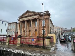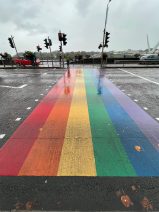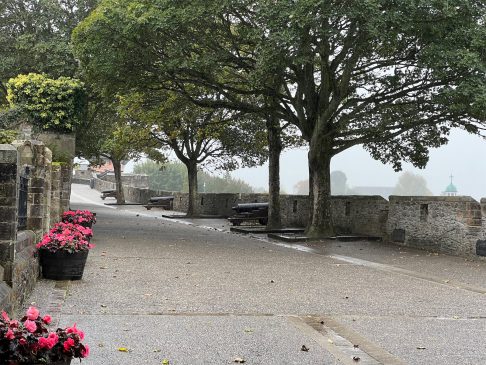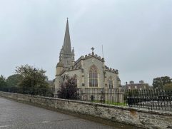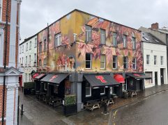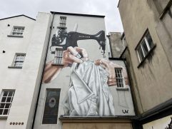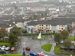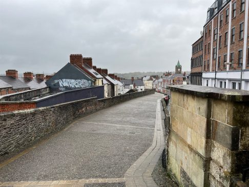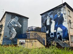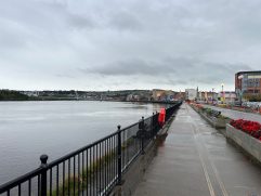 Heute sind wir etwas früher aufgestanden, weil wir um 8 Uhr beim Frühstück sitzen wollten. Hätten wir auch fast geschafft. Frühstück war gut und wir sind schnell mit zwei Amerikanerinnen am Nachbartisch ins Gespräch gekommen. Gegen 9:30 Uhr sind wir dann zu Fuß zum Bahnhof gegangen. Dort haben wir zwei Tickets gekauft. Der Service war super, denn der Mitarbeiter hat alles gegeben, damit wir die besten und günstigsten Tickets bekommen. £ 15.00 hat am Ende jeder bezahlt und wir hätten in der Region den ganzen Tag alles fahren können. Wir sind mit dem Zug bis Coleraine und dort umgestiegen in den Zug nach Londonderry/Derry. Die Strecke ab Coleraine ist teilweise super schön, direkt am Strand und Meer entlang. Sie wäre bestimmt noch schöner gewesen, hätten wir heute mal Sonne gesehen. Sollte aber nicht sein. Ganz im Gegenteil, denn heute hat es eigentlich nur geregnet. Der Unterschied lag lediglich in der Stärke des Regens. Wir sind pünktlich angekommen und sind von der Station als erstes über die Peace Bridge gelaufen. Dann haben wir die Guildhall besucht; dort gab es etwas besonderes. Man kann dort die John Hume Peace Prize Collection sehen. Er hat 1998 den Friedensnobelpreis bekommen und so etwas sieht man nur selten in echt. Dann sind wir durch die kleinen Seitengassen gelaufen und in The Cottage Craft Gallery and Coffee Shop gelandet. Dort gab es Tee und Mini Pancakes. Von dort haben wir eine Rund über die Stadtmauer gedreht, wobei wir das erste Mal so richtig nass geworden sind. Zum Trocknen haben wir uns ins Foyleside Shopping Centre begeben und etwas getrunken. Anschließend haben wir uns die ganzen Murals angesehen, weswegen wir ja eigentlich gekommen sind. Nachdem wir zum zweiten Mal richtig nass geworden sind, hatten wir bei Nandoo’s eine Mischung aus Lunch und Dinner. Für das eine zu spät und das andere zu früh. Aber es war lecker. Da der Zug nach Coleraine nur stündlich fährt und einer gerade den Bahnhof verlassen hatte, sind wir noch etwas entlang des Foyle River gelaufen und dann mit dem nächsten Zug wieder zurück nach Portrush. Hier haben wir noch eine Runde durch die Stadt gedreht und sind dann in die Kiwi Brew gegangen. Leckeres IPA (ein halbes ging vom Tisch auf Klamotten, Bank und Tisch), Gin Tonic und Kiwi Wings. Irgendwann haben wir uns auf den Rückweg zum Guest House gemacht. Einige Sachen mussten noch etwas ausgewaschen werden, damit wir den Biergeruch wieder loswerden. Ein paar mehr mussten noch dringend getrocknet werden. Morgen endet unsere Zeit in Nordirland und mit dem Wechsel nach Irland beginnt auch leider schon wieder unsere letzte Woche auf den britischen Inseln.