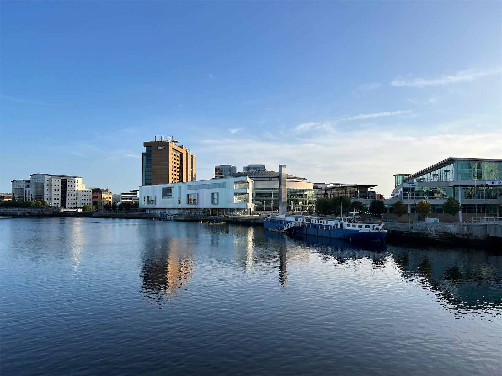 Um 5 Uhr hat der Wecker heute geklingelt. Da die Flugverspätung bereits gestern angekündigt wurde, hätten wir vielleicht auch etwas länger schlafen können. Allerdings bin ich mir nicht sicher, ob sich die Gepäckaufgabezeit nicht nach dem ursprünglichen Plan richtet. Ist ja auch egal. Wir waren zeitig dort, die Einzigen bei der Gepäckaufgabe und bei den Sicherheitskontrollen war auch nicht mehr los. Also konnten wir noch in Ruhe etwas frühstücken. Ich habe uns gleich in den ersten Laden gelotst. Keine Ahnung, ob das nun die beste Wahl gewesen ist. Jedenfalls hatten wir Breakfastroll mit Bacon und nachdem ich nach Ei gefragt habe, haben wir das auch noch bekommen. Dazu Tee. Der Flug von Glasgow nach Dublin ging dann wie angekündigt mit über einer Stunde Verspätung los. Wenigstens schien da schon die Sonne. Viel herausgeholt haben wir nicht mehr, so dass wir erst kurz nach 11 Uhr gelandet sind. Dann ewig langes Fahren zur Parkposition und auch wieder mit dem Bus. Die automatisierten Grenzkontrollen gingen super schnell und auch die Koffer rollten zeitgleich an. Dafür war am Mietwagenschalter eine ewig lange Schlange. Keine Ahnung, was die Leute da immer so diskutieren und machen. Als ich an der Reihe war, ging es wie immer sehr schnell. Wir haben einen grauen Opel Crossland bekommen. Wir haben ihn Rea getauft und zu finden war er im Bereich der Mietwagenrückgabe. Da soll man erst einmal drauf kommen, wenn man aus dem Fahrstuhl kommend gleich auf einen Pfeil in Richtung Shuttle zuläuft, der in genau die andere Richtung zeigt. Nachdem wir 20 Minuten an der Bushaltestelle gewartet hatten und kein Shuttle unseres Mietwagenanbieters kam, haben wir noch einmal geschaut und ihn dann doch letztendlich gefunden. Wir haben uns gleich auf den Weg nach Belfast gemacht und unterwegs nur kurz bei Subway gehalten. Manche Dinge bereut man dann sehr schnell wieder. Ein halbes Sub für jeden hätte auch gereicht. Die Fahrt weiter nach Nordirland verlief ohne Probleme und bei bestem Wetter. Gegen 15:30 Uhr haben wir dann das Maryville House B&B erreicht, wo wir die nächsten zwei Tage bleiben werden. Schlüssel mit Informationen lagen vor der Tür. Wir haben das Zimmer Darjeeling bezogen und sind dann mit dem Bus ins City Centre gefahren. Wir haben uns die City Hall angesehen, im Pub etwas getrunken, sind am Wasser spazieren gegangen und haben im nächsten Pub wieder etwas getrunken. Dort gab es auch Livemusik und die Band spielte passend zu unseren Pints Red Ale The Irish Rover. Dann haben wir uns mit dem Bus wieder auf den Rückweg gemacht. Wir sind zwei Stationen früher ausgestiegen und haben im Bao Bun noch etwas gegessen. Es war alles super lecker, aber speziell die Buns waren etwas überteuert. Morgen versuchen wir mal etwas in die Geschichte von Belfast einzutauchen.