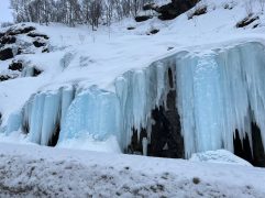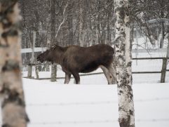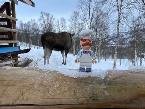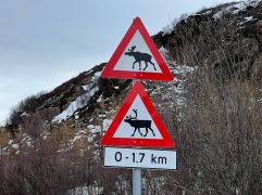 Das Abendessen gestern war schon richtig gut, vielleicht sogar das Beste der gesamten Reise. Ich hatte Scallops vorweg und anschließend Pork Chop. Steffi den Lammburger mit Halloumi. Nach dem Essen wieder mit dem Auto raus aus der Stadt und wieder dasselbe Ergebnis. Polarlichter ja, Wolken leider auch. Dafür war am Ende der Gin Tonic in der sechszehnten Etage in der Roof Top Bar richtig gut. Geschlafen haben wir auch sehr gut und das Frühstück hat uns mehr als positiv überrascht. Eine Mischung aus Buffet und a la Carte und super toll angerichtet. Wir waren wieder zeitig auf Tour, hatten wir doch noch einiges vor. Als erstes den Wagen laden. Dabei haben wir uns in aller Ruhe Bjerkvik angesehen. Viel gibt es dort nicht, schon gar nicht an einem Sonntag. Gut, dass es eine schnelle Ladesäule gewesen ist. Weiter ging es bis Fossbakken, wo sich ganz in der Nähe der Polar Park befindet. Da wir immer noch keinen Elch (einen, nein zwei Seeadler hatten wir schon wieder heute gleich zu Beginn) gesehen haben, dann eben so. Netter Park, allerdings überall dicht voll mit Schnee. Wir konnten nicht alle Wege laufen oder Gehege erreichen, haben aber trotzdem einiges gesehen. Immerhin hat Steffi einen Moose gestreichelt. Gegen Mittag sind wir weiter und man glaubt es kaum, aber prompt sehen wir gleich drei Elche in freier Wildbahn. It is Elk Time. In Setermoen haben wir gestoppt, eine Kleinigkeit gegessen und getrunken. Bei der Gelegenheit auch mal wieder geladen. Über Nebenstraßen ging es dann zum Zielort Nordkjosbotn, wo wir schon auf der ersten Etappe von Tromsø nach Finnsnes durchgekommen sind. Wir sind nur eine Nacht hier auf der Durchreise und haben Zimmer 101 im Vollan Gjestestue AS.