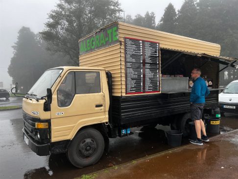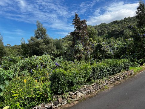 Die erste Nacht haben wir wohl unterschiedlich geschlafen. Ich etwas besser als Steffi. Irgendwo hier in der Nähe ist aber auch mal wieder so ein blöder Hahn. Gegen 8:30 Uhr sind wir runter zum Frühstück gegangen. Wenn ich runter sage, dann ist es wirklich so. Wir müssen bis zu unserem Bungalow nämlich einige Höhenmeter rauf laufen. Von unserem Balkon Pflanzen und haben auch keine direkten Nachbarn. Frühstück war sehr gut und wir haben ganz entspannt draußen auf der Terrasse gesessen. Um kurz vor 10:00 Uhr sind wir dann los Richtung Serreta im Westen der Insel. Leider mussten wir drehen, denn die Straße war (ist) aufgrund eines Erdrutsches ein ganzes Stück gesperrt. Das betrifft aktuell auch den Wanderweg, den wir heute gerne gegangen wären. Also sind wir einmal über die Insel Mitte den längeren Weg gefahren. Gruseliges Wetter und der Leuchtturm in Serreta war (ist) eigentlich gar kein richtiger. Zurück sind wir dann auch wieder ein etwas längeren Weg gefahren. Wir hatten unseren ersten Galao und unsere ersten Pasteis de Nata. Hatten bei Tasca Alegra-Te (einen Food Truck) einen Hot Dog mit Käse und auch sonst ein paar nette Eindrücke von der Insel Terceira. Zurück in Biscoitos wurde das Wetter schlagartig besser und so haben wir uns spontan noch für eine Wanderung entschieden. Es war so eine, die sich nicht in Gänze umsetzen ließ. Zum einen, weil wir mittendrin begonnen haben und zum anderen, weil auf dem letzten Stück, die Vegetation viel zu dicht gewesen ist. Also mussten wir insgesamt zweimal umdrehen. Aber wir haben geniale Fotos gemacht und es war auch richtig anstrengend. Wir haben uns dann noch im Supermarkt mit Wurst, Käse, Brot und Wein eingedeckt und genießen jetzt die Zeit auf unserem Balkon.