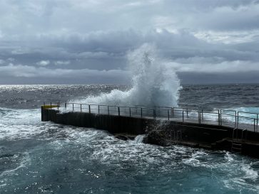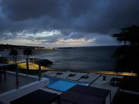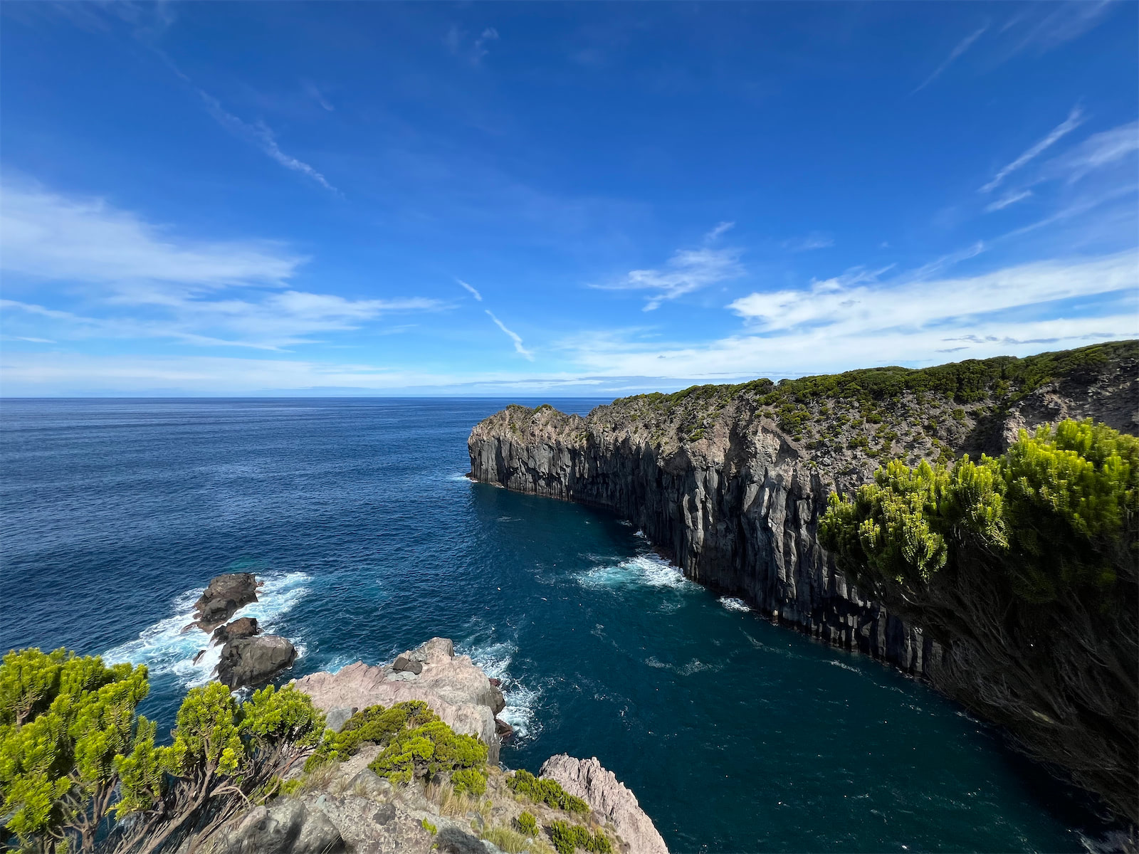 Die Nacht und der Morgen waren so wie gestern. Selbe Zeit und Frühstück wieder draußen. Dann haben wir uns auf den Weg gemacht, Terceira weiter zu erkunden. Zunächst haben wir uns die Piscinas Naturais Biscoitos angesehen. Dann ging es weiter zum Miradouro Altares und nach Raminho. Von dort wieder über die Insel Mitte in den Süden nach São Mateus. Dort haben wir eine kleine Runde gedreht und sind dann weiter entlang der Küste. Hatten noch ein Stop mit Ausblick und Getränken und einen weiteren an der Zona Balnear das Cinco Ribeiras. Leider wurde das Wetter entgegen der Vorhersagen im Hochland nicht besser, also sind wir von Doze Ribeiras ohne weiteren Stopp zurück nach Biscoitos gefahren. Dort angekommen hatten wir Glück, denn es schien noch etwas die Sonne. Also sind wir gleich noch einmal zum Naturschwimmbad und ins Wasser gegangen. Der erste Moment ist immer richtig kalt und kostet Überwindung. Aber dann geht es. Wir hatten eine schöne Zeit, bis auch dort irgendwann die Sonne verschwunden war. Zurück im Hotel sind wir gleich auch noch einmal hier in den Pool. Gefühlt war das Wasser noch kälter. Dann kam der große Regen und wir haben uns zurückgezogen. Gleich wollen wir noch mal los was essen und dann geht es in die letzte Nacht, zumindest an diesem tollen Ort. Aber die Reise geht noch lange weiter.