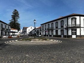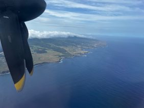 Gestern Abend sind wir nur noch einmal kurz ums Eck bei Neandro’s gewesen. Pizza, mal was anderes. Danach mussten wir aber alles noch einmal ablaufen. Geschlafen haben wir ganz gut und dieses Mal die ganze Nacht bei offenem Fenster (Balkontür). Meeresrauschen beruhigt. Beim Frühstück waren wir dann heute fast die Ersten, um 7:30 Uhr war auch generell noch nicht so viel los. Danach haben wir die restlichen Sachen zusammengepackt und sind Richtung Flughafen aufgebrochen. Vorher mussten wir noch kurz tanken und den Mietwagen abgeben. Hat alles bestens geklappt. Die Osten für Kraftstoff lagen deutlich unter unserem Plan. Wir sind aber auch nur 300 Kilometer gefahren. Das mit einem Diesel, da kommt man wirklich günstig bei weg. Auch am Mietwagen Center gab es nichts zu beanstanden. Die Koffer waren wir auch schnell los und da wir noch Zeit hatten, konnten wir vor der Sicherheitskontrolle noch in Ruhe einen Tee trinken. Danach ging alles relativ schnell und schon waren wir wieder zu Fuß auf dem Weg über das Vorfeld. Dieses Mal aber zum Flugzeug. Der Start war fast pünktlich und nach rekordverdächtigen 18 Minuten hatten wir unsere Parkposition auf dem Flughafen von Graciosa erreicht. Mit unseren Koffern und bei gutem Wetter sind wir die halbe Stunde bis ins Zentrum der Hauptstadt Santa Cruz gelaufen. Hier auf Graciosa haben wir uns ganz bewusst gegen einen Mietwagen entschieden. Mal sehen, ob das alles so klappt. In Santa Cruz angekommen haben wir zunächst gute zwei Stunden im Café da Praca verbracht. Es gab wirklich gute Cheeseburger, Bier und Kaffee. Dazu noch tollen Service. Um kurz nach 14 Uhr haben wir dann ein Taxi genommen und uns zu unserer Unterkunft fahren lassen. Wir mussten noch ein paar Minuten vor der Tür warten, was aber überhaupt nicht schlimm gewesen ist. Im Gegenteil, wir genießen hier eine wirklich tolle Aussicht. Dann kam Isabel, hat uns alles gezeigt und uns zur Begrüßung mit einer kleinen Tapas Platte überrascht. Inzwischen haben wir uns für die kommenden vier Nächte eingerichtet, waren im Supermercado und haben ein paar Sachen gewaschen. Jetzt ist nicht mehr so viel angesagt, denn die Luftfeuchtigkeit ist heute wahnsinnig hoch. Bloß nicht bewegen.