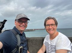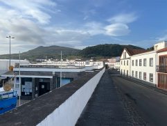 Trotz der Wärme haben wir eigentlich ganz gut geschlafen, auch wenn wir am Ende etwas vor dem Wecker wach geworden sind. Hatten wir noch Zeit für Kaffee ans Bett. Der Frühstückskorb stand wie versprochen um 7:30 Uhr vor der Tür. Die Wetteraussichten waren heute nicht so berühmt, trotzdem haben wir uns um kurz vor 9 Uhr hoffnungsvoll an den Aufstieg zur Caldeira gemacht. Nach einer guten Stunde und etwas mehr als 200 Höhenmetern waren wir am Fuß der Caldeira angekommen. Wir sind dann weiter hoch bis zum Aussichtsturm und haben dann den Weg hinab nach Luz gewählt. Von dort ging es dann direkt weiter entlang der Küste bis Carapacho. Dort befindet sich das einzige Thermalbad außerhalb der Insel São Miguel. Okay, es ist super klein und der Zutritt ist auf 30 Minuten begrenzt, aber dafür ist es kostenlos. Es war eine Wohltat. Danach sind wir ins Restaurant Dolphin „O Roque“ gegangen. Tolle Aussicht und leckeres Essen. Die letzten 1,5 Stunden unserer Wanderung sind wir ausschließlich entlang der Straße gelaufen. Das ist hier aber nicht so schlimm, denn die Autos konnten wir an zwei Händen abzählen. Leider kam dann am Ende doch noch der Regen, aber auch das haben wir überstanden. Für heute Abend haben wir uns Käse, Oliven und eine Flasche Wein gekauft. Die Luftfeuchtigkeit hat zum Glück etwas abgenommen, bleibt aber noch immer anstrengend.
