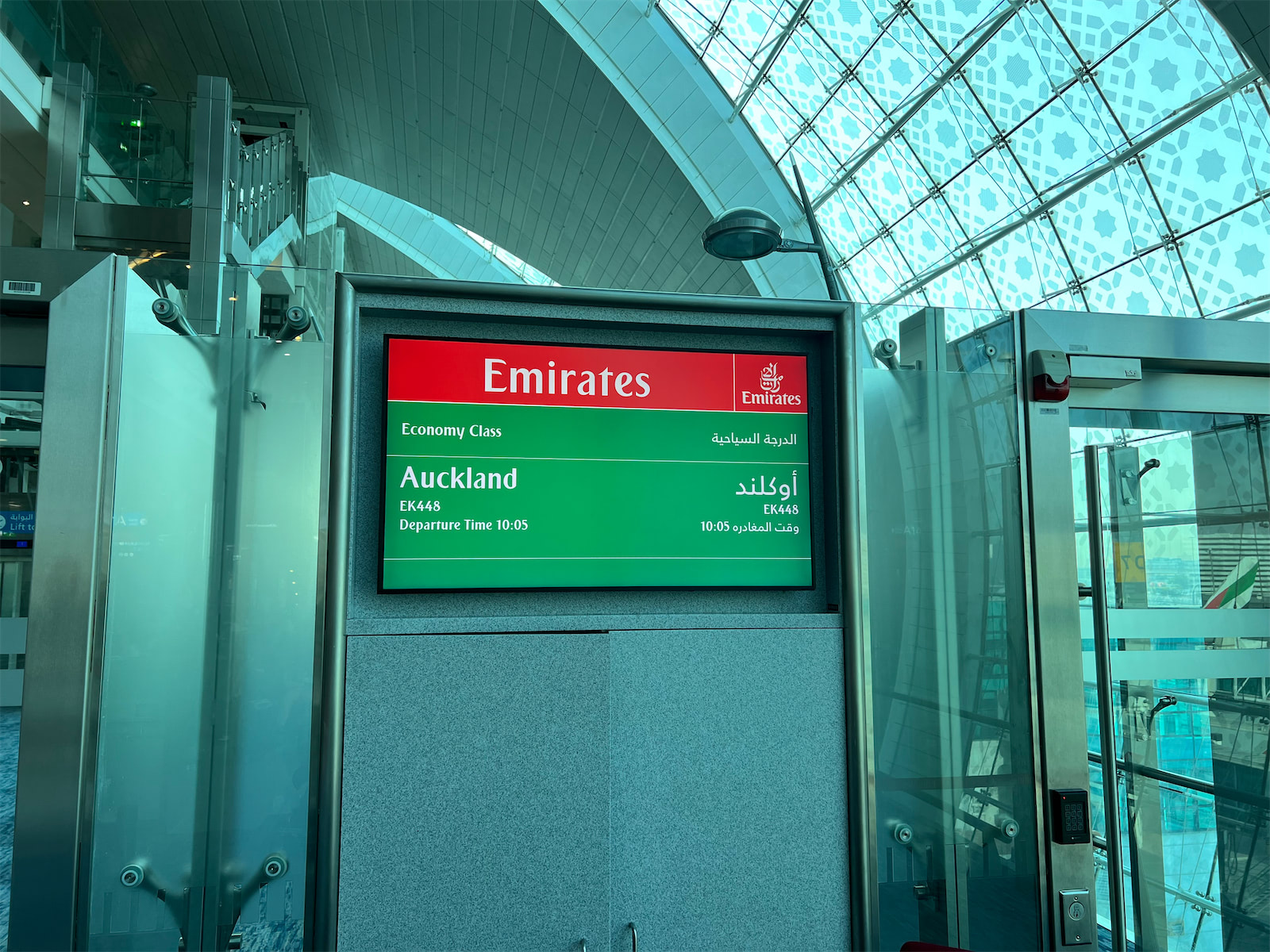 Wenn man freitags in den Flieger steigt, samstags in Dubai umsteigt, weiterfliegt und sein Ziel Auckland erst am Sonntag erreicht, dann ist das Schreiben ins Reisetagebuch nicht ganz so einfach. Immerhin bewegt man sich permanent durch die einzelnen Zeitzonen. Gefühlt ist der Körper immer woanders, als der Geist und am Ende sind wir 12 Stunden in der Zukunft. Also natürlich von zu Hause aus gesehen. Nachdem wir tatsächlich gestern Richtung Dubai nach dem recht späten Abendessen die Augen zugemacht hatten, konnten wir etwas schlafen. Die Landung in Dubai war dann fast 30 Minuten vor der geplanten Zeit. Am Dubai Airport angekommen hatten wir einen weiten Weg vor uns. Erst einmal von ganz hinten raus aus dem Flieger und dann von Terminalbereich C zu A. Dazwischen, also zwischen dem ganzen Laufen, war auch eine kurze Zugfahrt. Am Gate angekommen gab es dann einen Kaffee und wir haben uns etwas die Beine vertreten. Beim Boarding waren wir wieder mit die Ersten und haben unsere Plätze in der Premium Economy Class vorne auf dem Hauptdeck eines Airbus A380 eingenommen. Dies ist der erste PremEco Flug mit Emirates und uns gefällt es richtig gut. Schöne, bequeme breite Sitze, ausreichend Platz und die Rückenlehne geht schön weit nach hinten. Dazu einen großen Monitor, guten Service und alles sieht auch noch schick aus. Nach dem fast pünktlichen Start gab es einen Aperitif von der Bar und anschließend Lunch. Steffi hatte das Chicken und ich Prawns…sehr gut. Dazu gab es ein Glas Chardonnay, danach immer wieder schlafen und Film schauen im Wechsel. Nach zwei Filmen haben wir dann ein ganzes Stück geschlafen, aufgewacht bin ich, als wir schon längst an Perth vorbeigeflogen waren und östlichen Kurs Richtung Neuseeland hatten. Am Abflugort Dubai war es da noch Samstag, die aktuelle Ortszeit aber schon Sonntag. Ich habe ja gesagt, dass es etwas kompliziert ist. Ich habe dann noch meinen dritten Film geschaut und mich im Anschluss frisch gemacht. Hier endet nun der Samstag und ich schreibe dann ab Sonntag in Neuseeland weiter.
