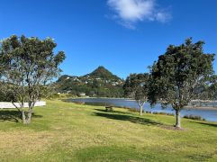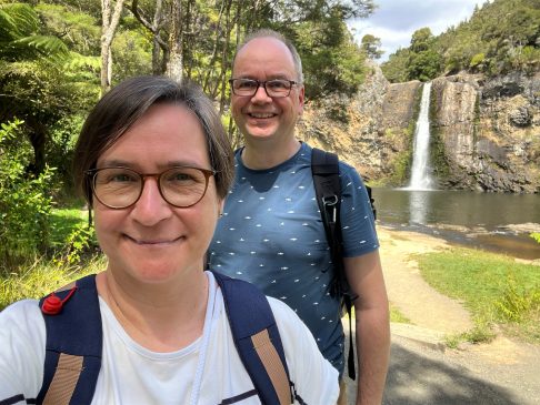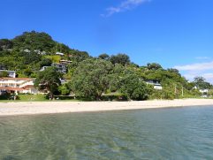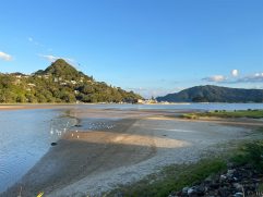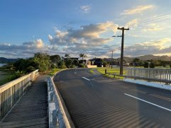 Letzte Nacht habe zumindest ich nicht so gut geschlafen. Der Schlaf wurde irgendwie ständig unterbrochen. Wodurch weiß ich allerdings gar nicht so genau. Auf jeden Fall war es sehr warm im Zimmer. 6:30 Uhr ging dann der Wecker und nach Kaffee, Nachrichten und Dusche haben wir alles gepackt und uns auf den Weg gemacht. Zunächst einmal nur 2 km bis zum Café@Vicky One. Dort gab es dann Eggs Benny und Black Breaky. Ein guter Start in den Tag. Anschließend haben wir Auckland verlassen und sind nach Süden zum Hunua Ranges Regional Park gefahren. Die Hunua Falls sind relativ dicht am Parkplatz und nur eine kurze Strecke zu laufen. Also haben wir uns für die große Runde hinauf zum Cosseys Dam entschieden. Es war gut warm und hatte unzählige Treppenstufen. Aber am Ende waren es zusammen mit den Hunua Falls schöne und anstrengende drei Stunden. Dann haben wir uns wieder auf den Weg gemacht, weiter Richtung Coromandel Peninsula. Nach nur wenigen Minuten gab es einen Eis Stopp und dann noch 110 km bis zu unserem Zielort Tairua. Das liegt direkt am Meer, also auf der einen Seite, und am Tairua River. Hier sind wir jetzt zwei Nächte in der Paku Lodge, haben Apartment Nummer 7 und blicken direkt auf den Tairua River. Unsere Lodge liegt fast direkt an der Mündung und dem Übergang zum Meer. Nachdem wir eingecheckt hatten, ging es gleich mit Badesachen ans Wasser. Arg frisch, aber man kann sich daran gewöhnen. Nach einem kurzen Spaziergang haben wir uns frisch gemacht und sind die 30 Minuten hinüber auf die andere Flussseite bis in die Stadt gelaufen. Bei Johnny’s Tairua hatten wir leckere Tacos und im Manaia noch ein kühles Hazy Pale Ale. Anschließend ging es die 2,3 km wieder zurück. Somit sind wir heute in Summe auf 20 km gekommen. Gerade haben wir noch etwas draußen gesessen, aber mit der Dämmerung kommen auch die Plagegeister. Die ersten haben mich schon gestochen. Wir lassen jetzt den Tag langsam ausklingen und können morgen vielleicht früher starten. Dann geht es einmal über die Halbinsel.
