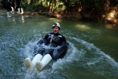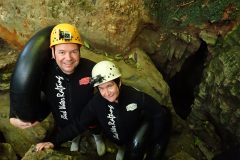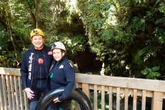 Heute waren wir tatsächlich mal vor dem Wecker wach. Das mag daran gelegen haben, dass es, nachdem es gestern Abend so irre warm war, es heute früh doch relativ frisch gewesen ist. So habe ich es auf jeden Fall empfunden. Der erste heiße Kaffee des Tages hat da schon etwas geholfen. Dann ging alles relativ zügig, denn wir mussten vor dem ersten großen Adventure noch schnell frühstücken. Das haben wir im General Store gemacht und waren dann pünktlich an der Blackwater Rafting Co. Schnell für die 9:30 Uhr Gruppe eingecheckt und noch kurz gewartet. Zum Startzeitpunkt haben uns, eine kleine Neunergruppe, unsere beiden Guides Liv und Luke eingesammelt und uns fortan begleitet. Zunächst umziehen: Badesachen, darüber Neoprenhose und -jacke. Dazu Neoprensocken und Gummistiefel. Das Rätsel und die Gummistiefel ist schnell gelöst, denn die hatten überall Löcher, damit das Wasser immer wieder ablaufen konnte. Natürlich gab es auch noch einen Helm mit Stirnlampe. Dann ging es mit dem Bus zunächst zu einem kleinen Übungsparcour, wo wir das rückwärts einsteigen, also reinfallen ins Wasser, mit unseren Gummireifen geübt haben. Nachdem alle einmal erfolgreich im Wasser gewesen sind, sind wir klatschnass wieder in den Bus und zum Höhleneingang. Eine wirklich sensationelle Tour, die alles geboten hat. Der Höhepunkt war dann, als wir in völliger Dunkelheit alle aneinandergereiht auf unseren Gummireifen durch die Höhle getrieben sind und an der Decke die Glühwürmchen gesehen haben. Am Ende wieder Retour mit dem Bus, raus aus den ganzen Klamotten, heiß duschen, denn das Wasser war relativ kalt in der Höhle, und heiße Tomatensuppe. Bewertung 10/10, ohne Frage. Luke hat während der Tour immer wieder Fotos von uns gemacht, die wir dann für echt günstige 26 Neuseeland Dollar downloaden konnten. Nach 3 Stunden sind wir zurück ins Hotel, haben das Auto abgestellt und sind ins Huhu Café auf einen kurzen Lunch. Steffi hatte Salat mit Chicken und ich Beef Sliders. Sehr gut und ausreichend. Danach haben wir uns noch auf eine Wanderung gemacht, mussten aber, nachdem wir endlich den Zugang gefunden hatten, schon nach kurzer Zeit wieder umdrehen. Der Trail war wegen gefährlichen Erdrutschen gesperrt. Also haben wir noch etwas Zeit auf unserem Balkon verbracht und gehen gleich noch lecker (hoffentlich) Essen. Morgen dann Richtung Rotorua.