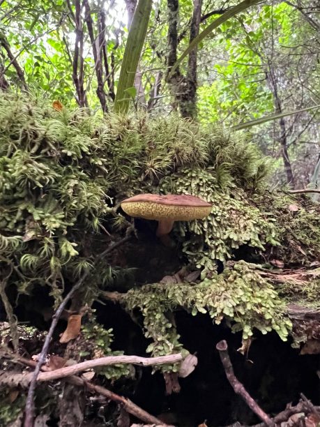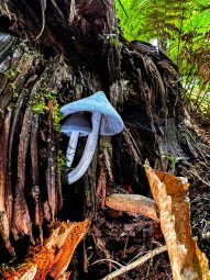 Wir sind gestern schnell eingeschlafen. Allerdings ist es über Nacht ganz schön abgekühlt. Irgendwann habe ich die restlichen Decken vom Fußende auch hochgezogen. Hinzu kam, dass über Nacht das Wetter komplett gewechselt hat. Als wir heute los sind, hing der Himmel voller dicker Wolken. Wir sind zum Supermarkt an der einzigen Tankstelle im Dorf gefahren, haben dort aber nichts für das Frühstück gefunden. Auf der anderen Seite stand aber ein Food Truck und der hatte offen. Also haben wir uns dort mit leckeren Sandwich Supreme versorgt. Corned beziehungsweise Roast Beef mit Relish und Sauerkraut sowie karamellisierten Zwiebeln auf Brot und das alles getoastet. War super lecker. Dann sind wir ins Whakapapa Village im Tongariro National Park gefahren, haben direkt am Chateau geparkt und sind ins Visitor Center gelaufen. Kurz orientiert und dann den Taranaki Falls Trail im Uhrzeigersinn gewandert. Tolle Tour und interessante Natur. Nach gut zwei Stunden waren wir wieder zurück, haben uns leckere Muffins gekauft und ein Stück weiter eine Pause eingelegt. Dann sind wir zum Lake Rotopounamu gefahren und haben auch dort noch einmal die fast zweistündige Wanderung um den See gemacht. Hier war allerdings der Waldboden viel spektakulärer, denn wir haben endlich mal richtig viele Pilze gesehen. Sogar einen wunderschönen blauen. Am Ende des Trails fing es richtig doll an zu regnen. Zu einem Überfluss habe ich auf der Fahrt zur Unterkunft einmal nicht aufgepasst und schon habe ich ein Ticket für Speeding bekommen. Blöd, 200 m vor dem Ziel. Der Regen hält noch immer an und wird zwischendurch auch immer richtig doll. Aber zum Abendessen müssen wir irgendwie noch gehen. Die Schnapps Bar, wo wir heute hinwollen, ist sieben Minuten zu Fuß entfernt. Lang genug, um richtig nass zu werden. Zumindest auf dem Hinweg haben wir eine Phase mit sehr wenig Regen abpassen können. Steffi hatte Pork Bellys auf Kürbispüree, und ich die Razorback Ribs. Dazu mal wieder ein großes Hazy Pale Ale. Zurück sind wir allerdings ziemlich nass geworden und wir wärmen uns jetzt erst einmal auf. Morgen geht es weiter und am späten Vormittag gibt es gleich das nächste Abenteuer.