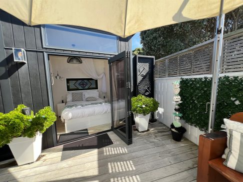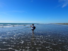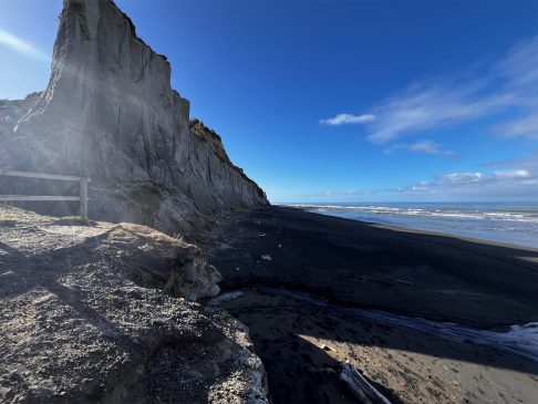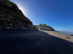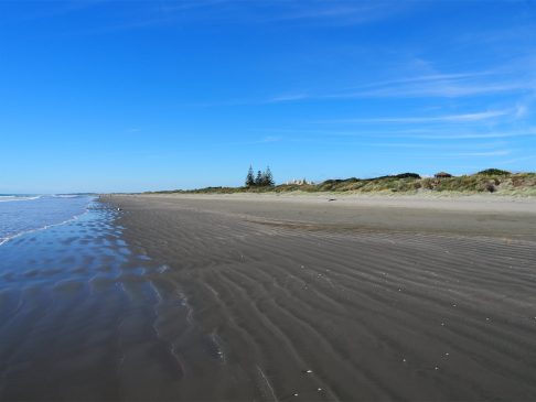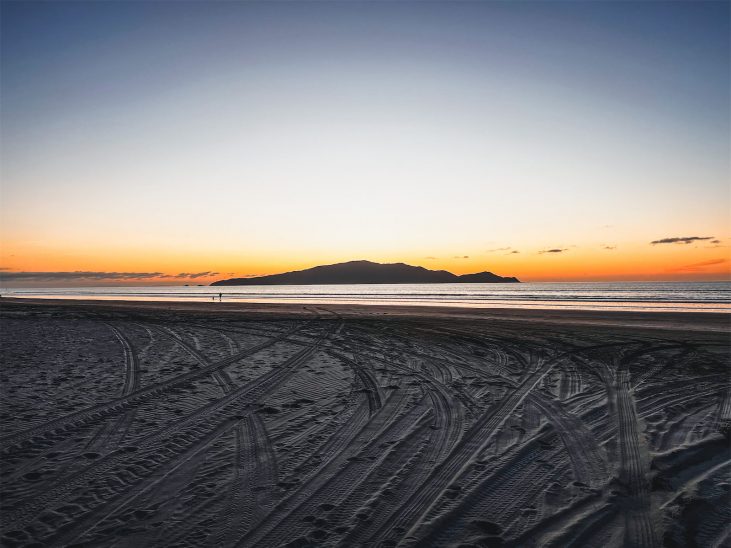 Unseren Gastgebern ist es gestern auch zu kalt geworden, und sie hatten sich entschieden, einmal richtig durchzuheizen. Das war dann schon richtig angenehm. Entsprechend gut haben wir auch geschlafen. Um 8:00 Uhr saßen wir wieder beim Frühstück haben es uns gut gehen lassen. Dann haben wir unsere Sachen in Waka Ma gepackt und uns verabschiedet. Mount Taranaki war heute in dicke Wolken eingepackt, der Rest des Himmels irgendwie blau und wolkenlos. Sollte uns egal sein, wir haben gestern unser perfektes Foto gemacht. Nach gut 20 Minuten haben wir den Küstenort Hawera erreicht und sind zum Waihi Beach gefahren. Dieser Teil der Küste besteht nur aus toller Steilküste. Nach einiger Zeit am Strand sind wir weitergefahren. Wir wollten zum Manawapou Viadukt, aber trotz aller Versuche hat es nicht geklappt. Von der einen Seite war der Walkway wegen grasender Rinder gesperrt und von der anderen Seite ist es ein Privatgrundstück. Also weiter nach Whanganui und in der Stadt etwas die Beine vertreten. Geparkt haben wir relativ zentral am Whanganui River und sind dann zunächst durch einen kleinen Park auf einem Hügel ins Zentrum gelaufen. Dort die Victoria Avenue einmal rauf und runter, anschließend zurück zum Auto. Whanganui ist UNESCO City of Design. Tolle historische Gebäude prägen zudem das Stadtbild. Dann haben wir uns auf den Weg zu unserem Zielort Peka Peka gemacht. Unterwegs noch ein kurzer Stopp in Bulls und dann durchgefahren. Hier sind wir jetzt (leider nur) eine Nacht in Arora Tiny House Bed & Breakfast. Die Unterkunft ist wirklich super. Toll eingerichteter Trailer mit großer Terrasse, vielen Sitzmöglichkeiten draußen und Außendusche. Dazu ein ewig langer Strand und die Tasmanische See gleich um die Ecke. Hier könnten wir auch gerne ein bis zwei Tage länger bleiben, aber das Problem hatten wir ja schon. Wir sind auch gleich an den Strand, sind ewig weit gelaufen haben tolle Fotos gemacht. Danach ging es nach Waikanae, kurz Getränke kaufen und Abendessen. Unser ausgewähltes Restaurant Salt and Wood hatte leider nur noch Platz am Katzentisch also sind wir ans Meer zur Long Beach Tavern gefahren. Die gehören zwar zusammen, haben aber eine unterschiedliche Karte. Wir mussten noch einmal 15 Minuten auf einen freien Tisch warten und anstatt Beef Brisket gab es Pizza sowie Fish and Chips. Aber es war trotzdem gut. Den Sonnenuntergang haben wir knapp verpasst und es ist merklich kühler geworden. Also haben wir uns zurückgezogen und beenden den tollen Tag im warmen Inneren unseres Tiny Houses.