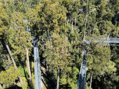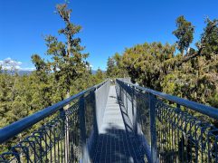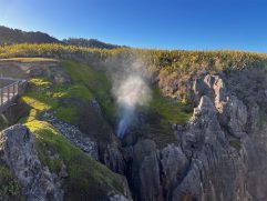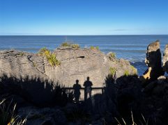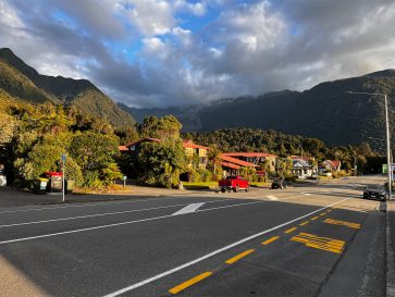 Die Nacht verlief relativ ruhig, auch wenn sie gestern dann doch später begonnen hat, als zunächst geplant. Wir waren eigentlich schon im Bett, da hatte ich noch den tollen Sternenhimmel gesehen. Also wieder anziehen und raus. Es sind uns wieder ein paar gute Aufnahmen gelungen, auch wenn der Vollmond schon etwas gestört hat. Um 6:00 Uhr hat dann der Wecker geklingelt und wir sind gewohnt langsam in den Tag gestartet. Kaffee, duschen und einpacken. Bevor wir los sind, haben wir noch den Schlüssel zurückgebracht. Die Rezeption ist in der 300 m entfernten Punakaiki Rock Hotel & Garden Bar. Erster Stopp dann am Pancake Rocks Café. Ein Berg Pfannkuchen mit Banane, Sirup und Bacon. Echt viel. Dann noch einmal auf eine Runde durch die Pancake Rocks. Bei Flut kamen auch die Blowholes richtig zur Geltung. Dann ging es weiter nach Greymouth. Ich wollte mir eigentlich die Haare schneiden lassen, aber der Barber Shop war relativ voll und so lange wollte ich nicht warten. Also ging es weiter bis Hokitika. Dort haben wir uns mal die Stadt angesehen, haben ein paar Sachen gekauft und waren mal wieder auf der Suche nach Briefmarken für meinen lieben Kollegen Ronald. Aber die hatten wir alle schon. In Ruatapu sind wir zum West Coast Tree Top abgebogen und haben den Tree Top Walk gemacht. Vergleichbar mit dem, den wir auch schon zweimal in West Australien gemacht haben. Und auch hier haben wir es uns nicht nehmen lassen, den Walk zweimal zu laufen. Dann hieß es am Nachmittag Strecke machen, denn bis zu unserem Zielort Fox Glacier waren es noch knapp 150 km. Allerdings ist die Streike über den State Highway 6 hier super gut zu fahren und bietet die ganze Zeit perfekte Aussichten. Unterwegs noch ein paar Stopps für Fotos und Aufnahmen mit der Drohne und dann sind wir gegen 17:00 Uhr angekommen. Eincheckt haben wir im Zimmer sechs im Rainforest Motel, haben auch schon wieder ein paar Klamotten gewaschen und auch schon gegessen. Jetzt ist Abendstimmung und wir entspannen, da wir zwei Nächte bleiben, wird morgen gewandert.