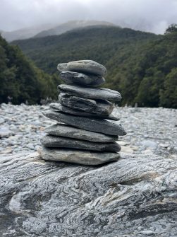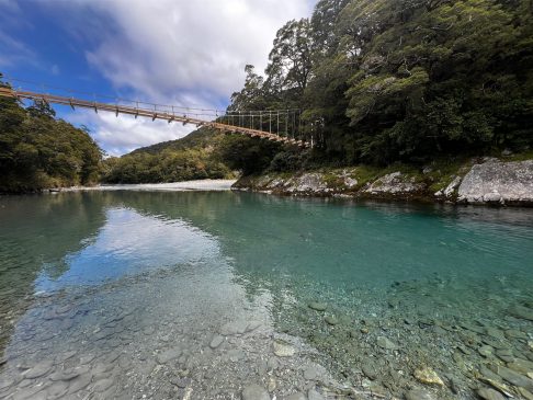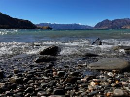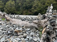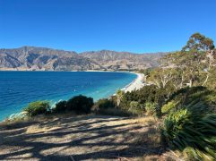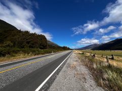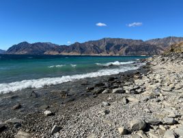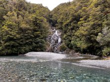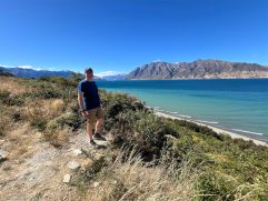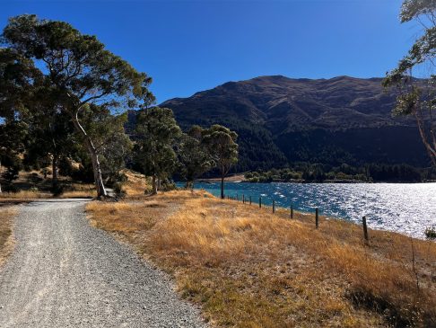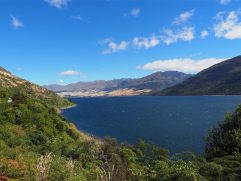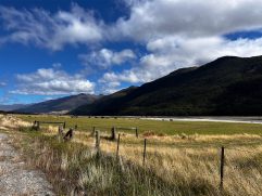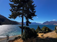 Also von den drei Cakes, die wir gestern gekauft haben, haben wir immerhin noch zwei gegessen. Das war’s dann aber auch. Da wir nach einer weiteren guten Nacht heute nur ein kleines Frühstück hatten, hat es der Lemon Cake noch bis 10:30 Uhr geschafft. Danach war er weg und ich satt. Eine Tüte Chips haben wir dann unterwegs vernichtet. Das Wetter heute Vormittag war zum vergessen. Dicke Wolken, nur 14 °C und zwischendurch dann auch noch Regen. Dennoch haben wir jede Menge Stopps eingebaut. Über den Haast Highway oder auch weiterhin SH6 ging es zunächst zurück an die Küste. An der Bruce Bay haben wir das erste Mal angehalten. Allerdings waren nach kurzer Zeit die Plagegeister wieder da und da wir in froher Erwartung kurze Hose anhatten, war es echt blöd. Einige Kilometer weiter am Ship Creek Beach habe ich mich mit Buschmann eingesprüht und schon war es besser. Dann hat der State Highway die Küste verlassen und es ging in die lange Anfahrt zum Haast Pass. Die Fantail Falls haben wir uns angesehen, aber wieder einmal waren für uns die spannendsten Dinge auf dem Weg dorthin. Auch die 1,6 km zu den Blue Pools sind wir gelaufen. Aber da gerade eine Brücke neu gebaut wird, kommt man gar nicht dorthin. Der Weg endet kurz zuvor und nur wer den Fluss eigenen Fußes durchquert, erreicht das Ziel. Dann haben wir zunächst den Lake Wãnaka und später den Lake Hawea erreicht. Auch hier an vielen Stellen noch einmal spektakuläre Stopps, bevor wir das Hawea Hotel erreicht haben. Eincheckt haben wir in Zimmer Nummer neun. Wir haben vom Balkon einen perfekten Blick auf den See und bereits gestern Abend für heute online einen Tisch reserviert. Begonnen haben wir mit einem Gin Tonic bei blauem Himmel und strahlendem Sonnenschein draußen auf unserem Balkon. Anschließend sind wir noch eine kleine Runde spazieren gegangen und haben weiter die Sonne genossen. Allerdings ist es auch sehr windig und so unterschätzt man schnell mal ihre Kraft. Jetzt kommen wir gerade vom Abendessen, was auch wieder richtig gut gewesen ist. Nun warten wir auf einen tollen Abendhimmel, denn es ist weiterhin wolkenlos und es hat kaum Lichtverschmutzung hier.