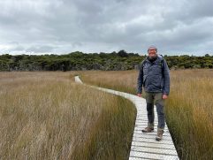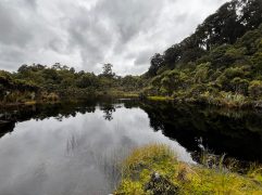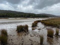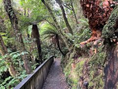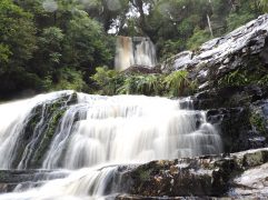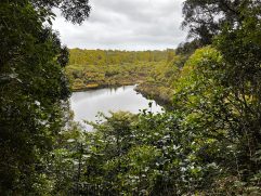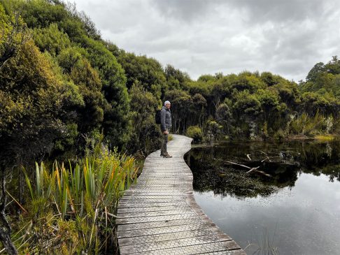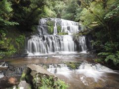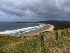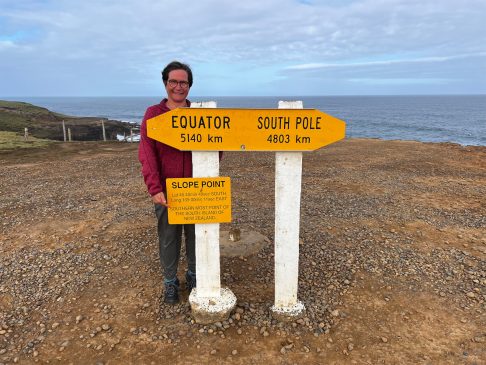 Wir haben wieder einmal sehr gut geschlafen, aber es hat sich über Nacht merklich abgekühlt. Da sind wir heute früh gerne noch einmal 5 Minuten länger im warmen Bett geblieben. Die Vorhänge hatten wir schon mit dem Wecker aufgerissen und so hatten wir einen schönen Sonnenaufgang. Frühstück haben wir uns dann gemacht und im Anschluss ging es auf in die Catlins. Das Wetter war den ganzen Tag über wechselhaft. Allerdings hat es nur geregnet, während wir im Auto saßen. Unser erster Stopp waren die Purakaunui Falls. Nette kleine Wanderung, perfekt für den Start. Danach ging es zum Lake Wilkie. Schöne Runde runter zum See und wieder zurück. Die spannendsten Sachen haben wir heute wieder im Unterholz gefunden. Verwundert hat es uns schon manchmal, dass wir weit unten Pilze mit der Größe eines Stecknadelkopfes finden, die großen Singvögel über uns in den Bäumen aber nicht. Danach sind wir kurz zurück nach Papatowai auf einen kleinen Lunch, bevor es zum Tautuku Board Walk ging. Nächster Stopp dann an den McLean Falls. Hier war die Strecke schon länger und anspruchsvoller. Zurück am Auto gab es einen Tee und leider auch wieder Sandflies. Also sind wir weiter bis Fortrose durchgefahren. Von dort ging es dann entlang der Küste zurück bis Curio Bay. Unterwegs noch Waipapa Point mit seinem Lighthouse und Slope Point, der südlichste Punkt der Südinsel. In der Porpoise Bay am kleinen Ort Curio Bay konnten wir von oberhalb des Strandes vier Delfine in einer Bucht beobachten. Im Wasser war ein Surfer und eine Frau auf einem SUP, die das Interesse der Meeressäuger geweckt hatten. So schwammen sie eine ganze Zeit immer um die Beiden herum. Glück muss man haben. Im Café am Campingplatz haben wir ganz lecker gegessen und dann noch bis 20:00 Uhr Ausschau nach Pinguinen gehalten. Sind aber bis dahin keine gekommen und wir mussten los, hatten wir noch gut 90 Minuten Rückweg vor uns. Die Rückfahrt im Dunkeln war höchst spannend. Haben wir jede Menge Wildlife im Scheinwerfer gesichtet: Marder, Possum, Maus, Hase, Reh und auch eine Kuh. Jetzt trinken wir noch etwas und fallen dann ins Bett.