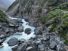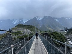 Gestern Abend haben wir mal etwas gemacht, das wir hätten schon längst einmal machen sollen. Wir haben uns ein Tomhawk Steak geteilt. Das war echt lecker. Danach gab es überraschenderweise noch einen super tollen Sternenhimmel und wir haben noch mehr Fotos von der Milchstraße gemacht. Geschlafen haben wir ganz gut, auch wenn das Bett nicht so ganz nach unserem Geschmack ist. Heute früh dann die erwarteten Wolken und auch der Regen kam, wenn auch früher als erwartet. Da saßen wir gerade bei Jack Rabbit beim Frühstück. Hat aber schnell wieder aufgehört und so sind wir trocken zurückgekommen. Dann haben wir uns auf die gut 100 km lange Strecke ins Hooker Valley gemacht. Das Wetter war sehr wechselhaft. Sehr windig, begleitet von einigem Regen. Manchmal kam dann aber auch die Sonne heraus. Der Parkplatz war gut gefüllt, trotzdem war noch ausreichend Platz da. Wir sind zunächst den Trail zum Kea Point gelaufen und anschließend ein ganzes Stück über den Hooker Valley Trail. Da dies eine Sackgasse ist, kann man einfach irgendwann umdrehen. Den Mount Cook haben wir heute nicht wirklich gesehen. Keas leider auch nicht. Regen haben wir genug abbekommen und auch der Abstecher zum Tasman Glacier View Point war eher etwas enttäuschend. Danach hatte ich auch gleich eine Schwächephase. Mit Sicherheit zu wenig getrunken und gleichzeitig zu viel geschwitzt. Ich dachte, ich wäre klüger. Das war Steffi’s Chance, noch einmal zu fahren und so ist sie für den Rückweg auf die rechte Seite gewechselt. Am Lake Pukaki haben wir noch einmal für leckeres Lachs Sashimi gehalten und nachdem gestern 100 g für jeden von uns doch etwas wenig gewesen ist, haben wir uns heute die 500 g Portion geteilt. Gegen 17:00 Uhr waren wir wieder zurück und haben uns fertig gemacht und erholt. Beine und Knie merken wir beide inzwischen ziemlich doll. Ein Hot Tub wie in Rotorua vor circa drei Wochen wäre jetzt super. Gleich gehen wir noch etwas Essen und morgen geht es dann auf die letzte Etappe bis nach Christchurch.